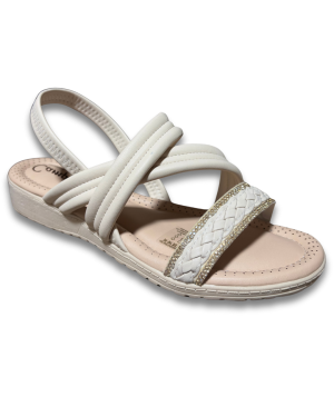 A Sandália Feminina Campesi CE613 foi desenvolvida para oferecer conforto prolongado com um visual elegante. O cabedal é confeccionado em material  macio com acabamento que imita o couro, proporcionando sensação suave no contato com a pele. O modelo conta com ajuste  de elástico facilitando o calce. A palmilha possui tecnologia anatômica e acolchoada, ajudando no amortecimento e no alívio de pressão durante o uso. Já o solado em borracha leve e antiderrapante garante segurança e estabilidade ao caminhar. Ideal para o dia a dia, trabalho e momentos de lazer com conforto.