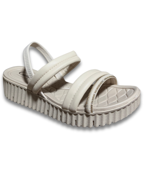 A Sandália Mississipi MF992 é uma flatform feminina moderna com cabedal em material macio, tiras largas com aplicação metálica e pontos com pedrarias para um toque sofisticado. Tem calce fácil com elástico no calcanhar, palmilha macia de PU, sola de borracha e plataforma de aproximadamente 4 cm, trazendo elevação com estabilidade. Ideal para uso diário, passeios e looks casuais elegantes.