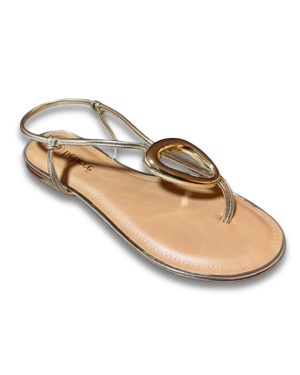 A Sandália Bebecê T1028-494 é uma rasteirinha elegante e leve, com cabedal metalizado que dá um brilho sutil e sofisticado. Possui tiras finas que passam entre os dedos e um adorno metálico central que valoriza o visual. A palmilha é de espuma revestida, garantindo conforto macio. O solado é baixo  em borracha TR, trazendo estabilidade e durabilidade. Ideal para looks de verão, passeios casuais ou eventos mais leves.