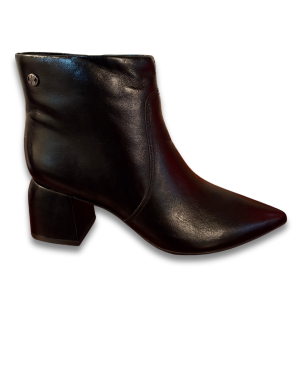 Bota feminina em couro legítimo, cano curto, salto bloco de 4 cm, palmilha macia e solado antiderrapante. Fechamento em zíper lateral. Estilo, conforto e qualidade para todas as ocasiões.