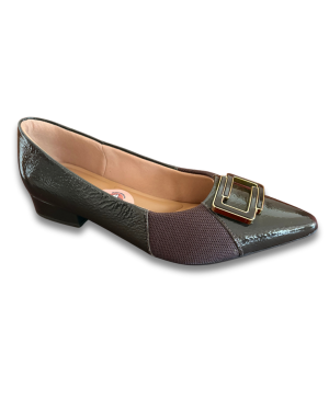 Elegância e conforto reunidos em uma sapatilha versátil. Fabricada com material sintético e detalhes em camurça e vinil, combina visual refinado e moderno. Possui fechamento em tira com fivela para ajuste no peito do pé e visual clássico. O bico arredondado garante conforto sem apertos, e o solado flexível favorece a mobilidade nos passos. Interior acolchoado e macio promove bem-estar durante o uso prolongado. Ideal para composições casuais, looks do trabalho ou eventos sociais discretos.