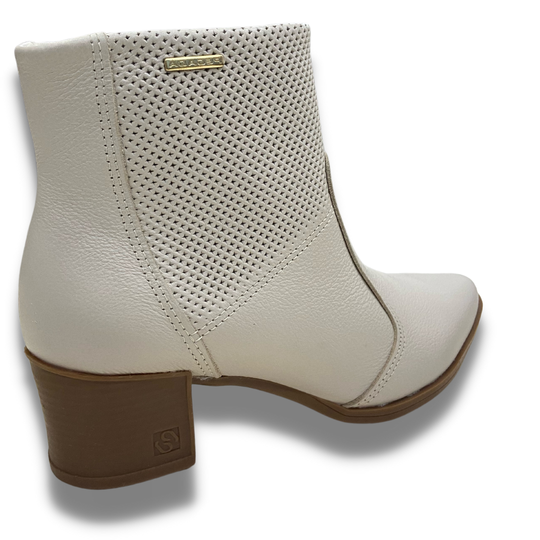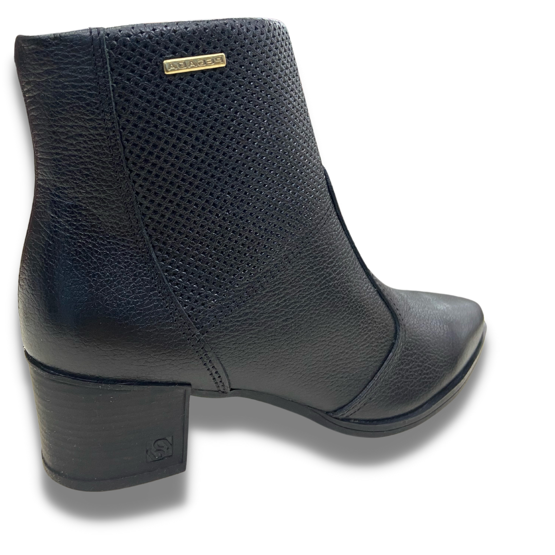 Bota no estilo clássico em Couro de Pelica (mais macio do mercado), tem salto quadrado de 3cm confortável, ziper lateral para facilitar o calce, um detalhe lindo e toda elegância para seu dia a dia ou passeios