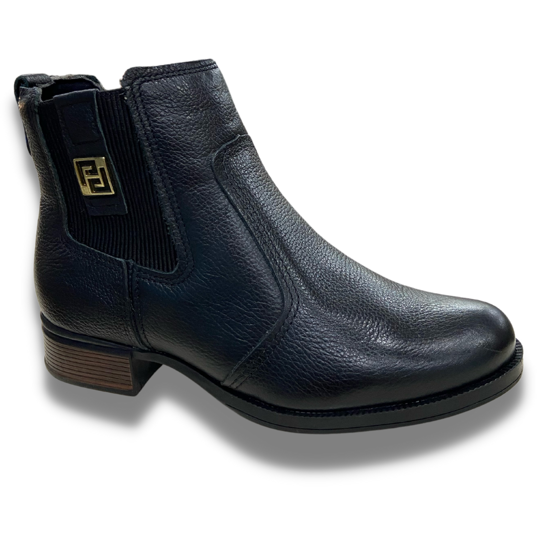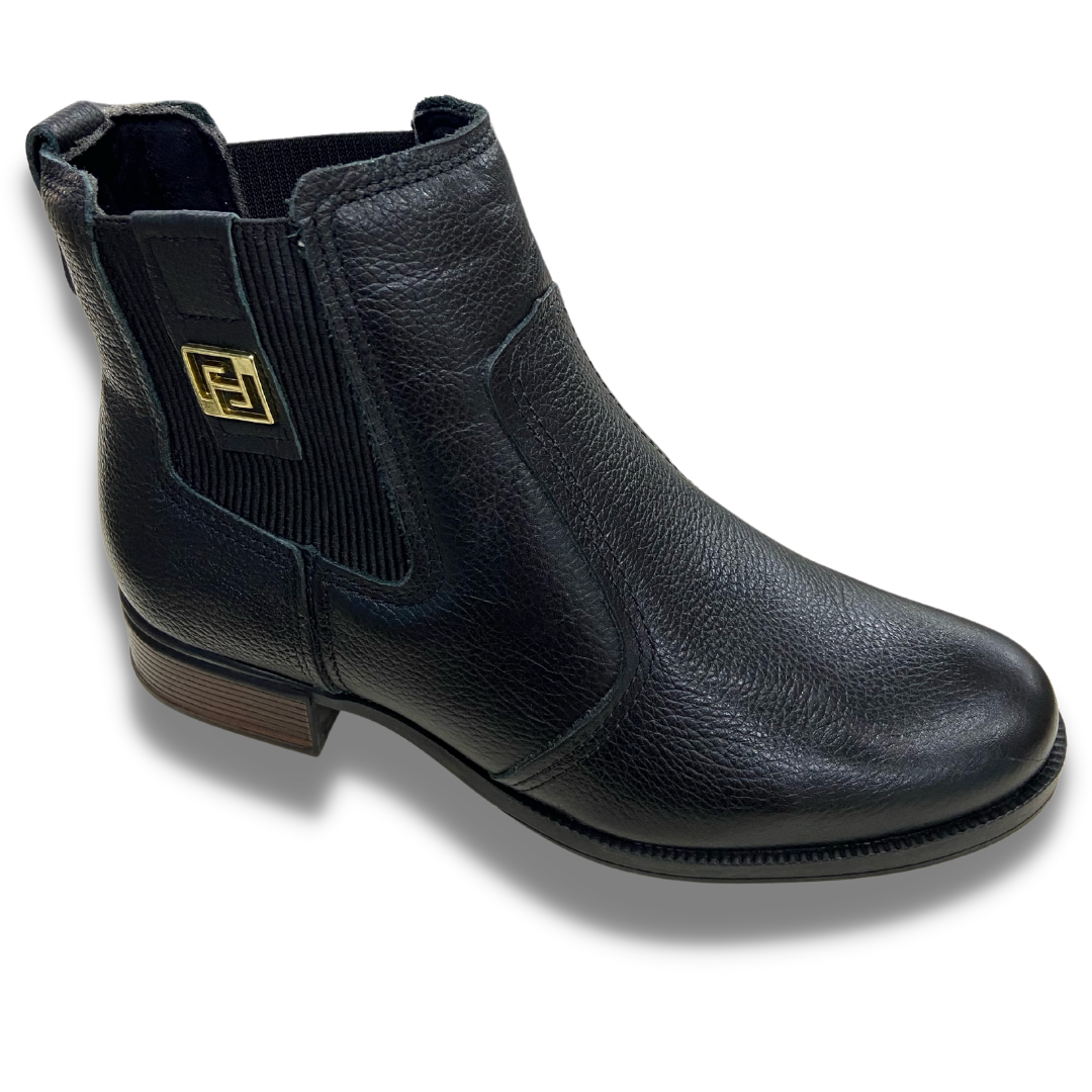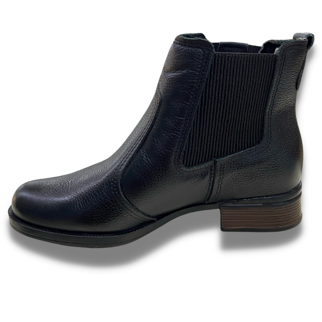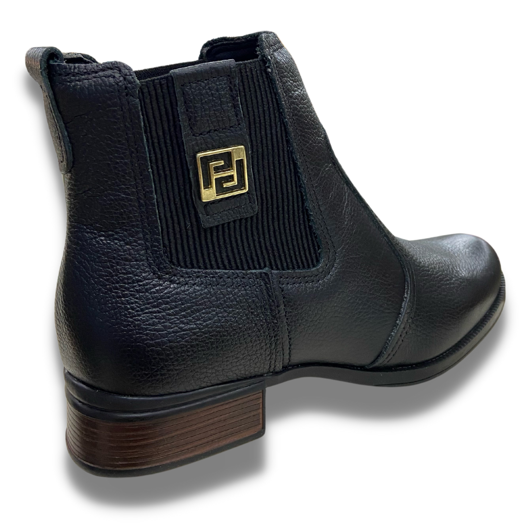 Bota em couro qualidade pegada, tem salto quadrado e confortável de 3cm, toda feita em couro e com dois elásticos nas laterais que fazem o modelo um estilo diferenciado e também ajudam na hora de calçar a bota. Solado de borracha e forro macio.