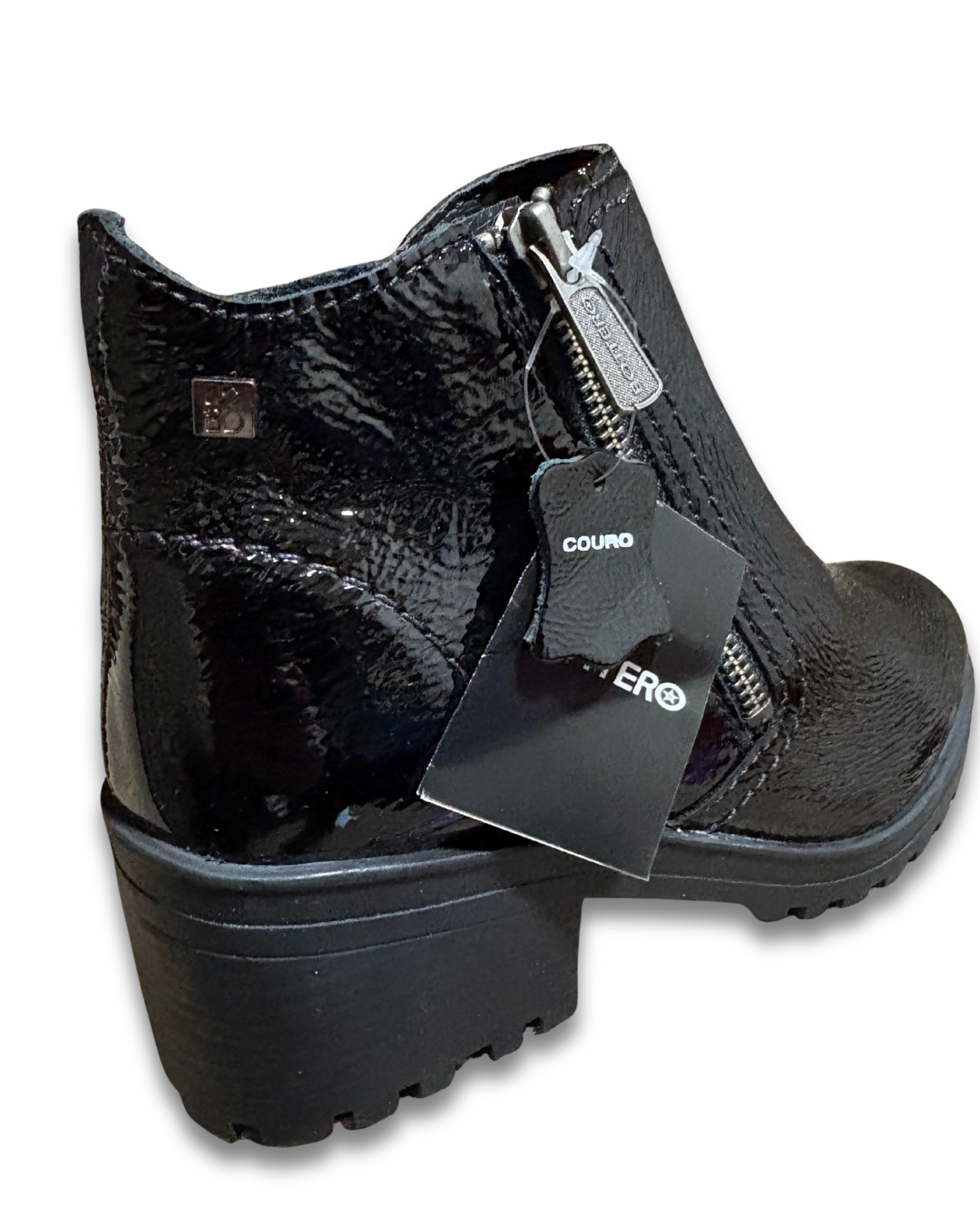Seu design de cano médio com acabamento em costuras aparentes e detalhe lateral em zíper agrega praticidade e modernidade à peça. O fechamento por zíper interno facilita o calce e garante ajuste ideal aos pés. A palmilha macia e o forro interno têxtil contribuem para o conforto prolongado, mesmo em uso intenso no dia a dia.