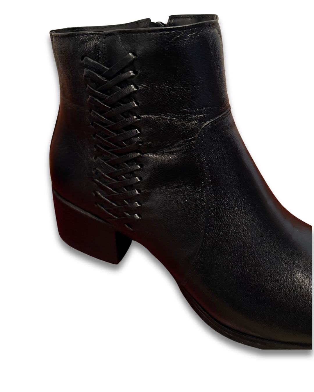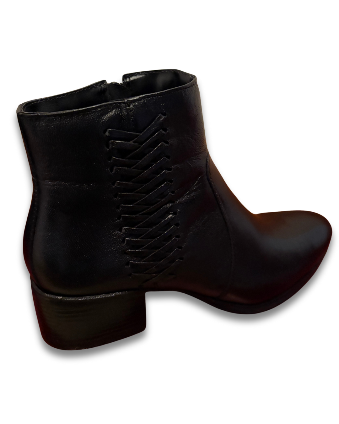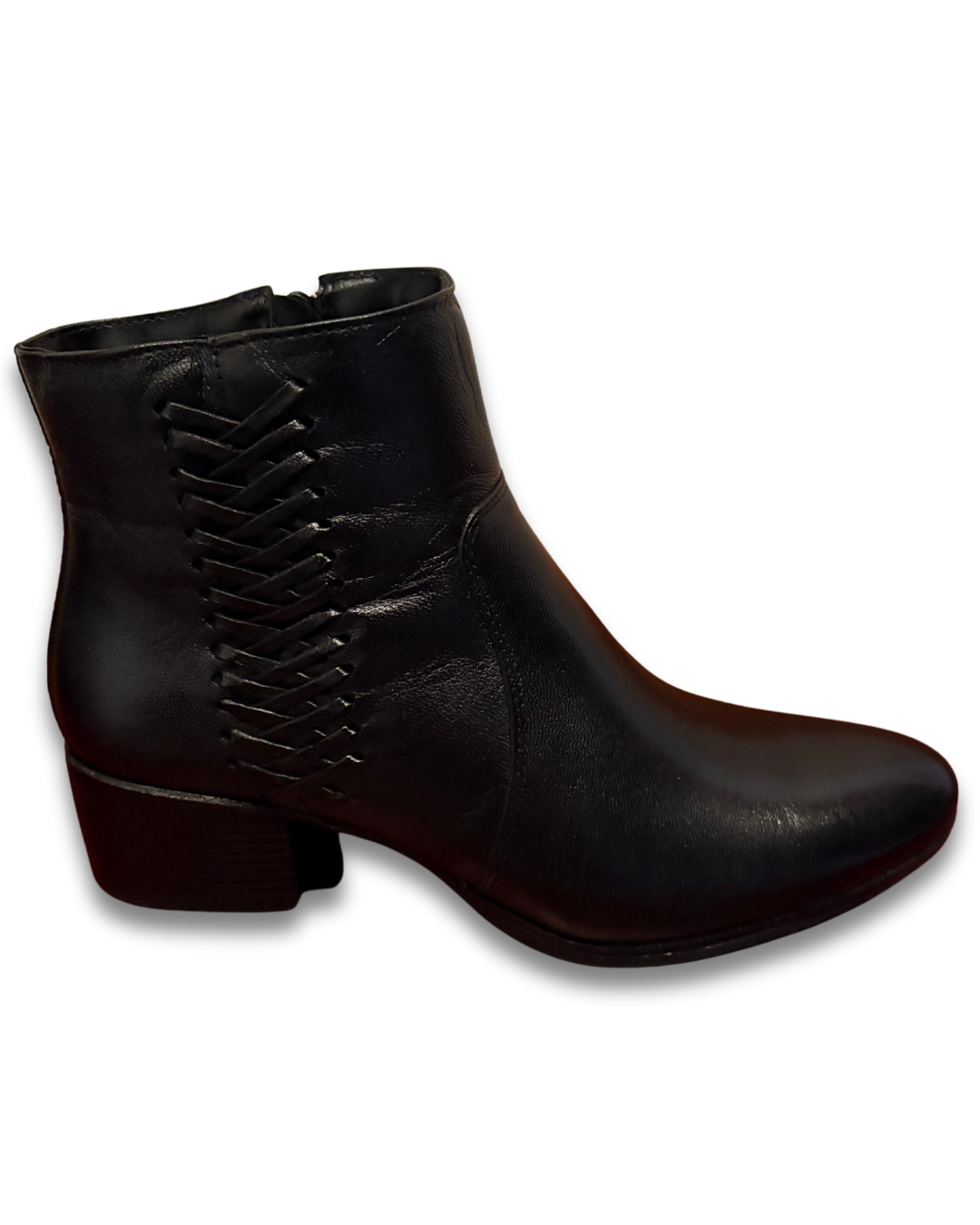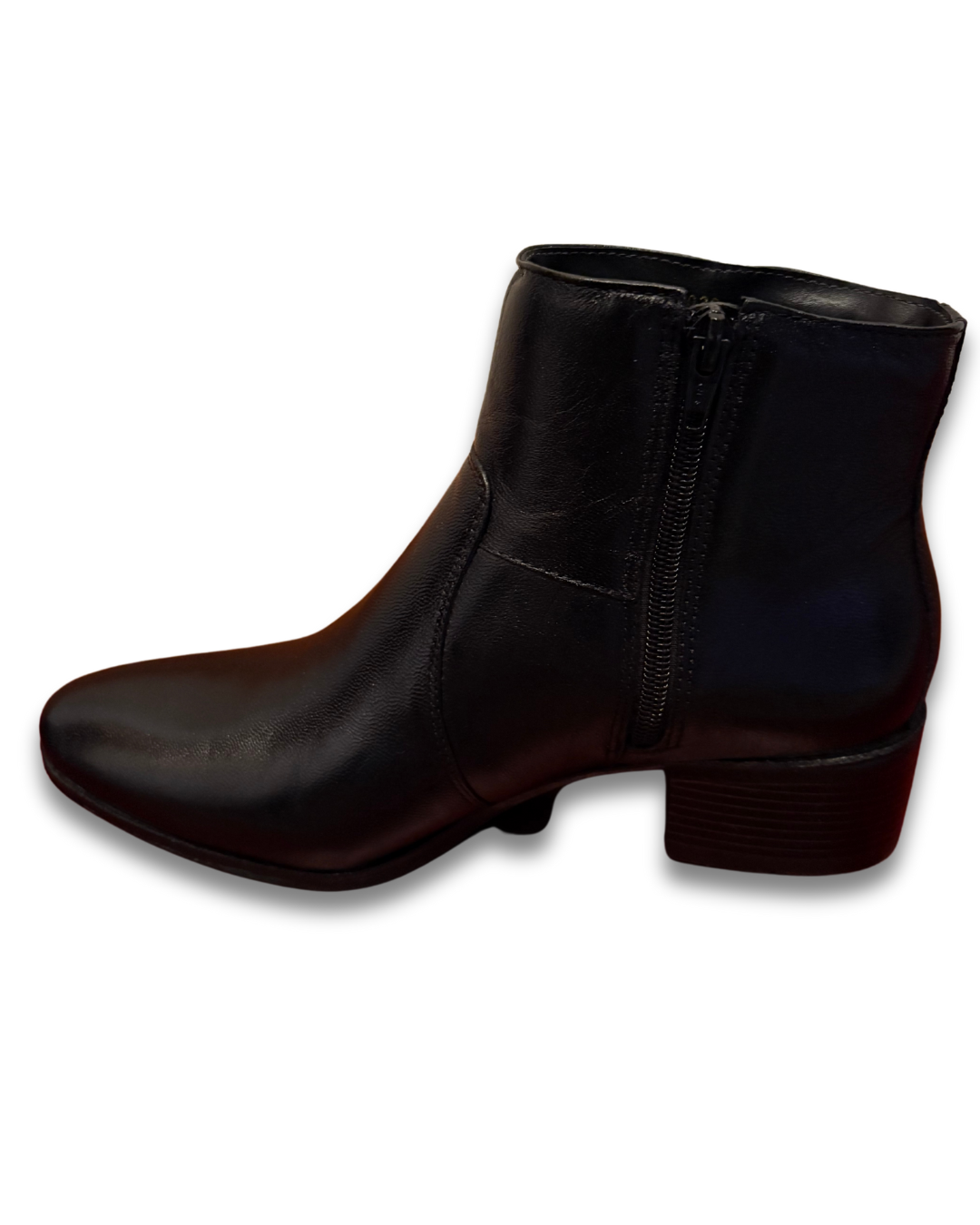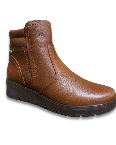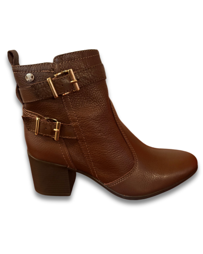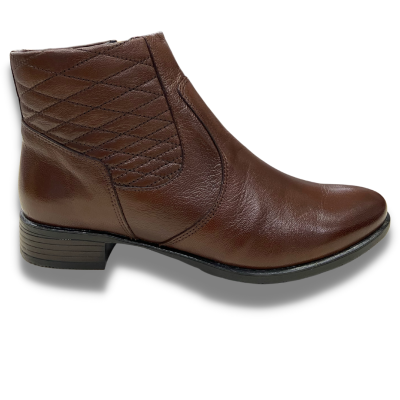 Bota feminina em couro legítimo, cano curto, salto bloco de 4 cm, palmilha macia e solado antiderrapante. Fechamento em zíper lateral. Estilo, conforto e qualidade para todas as ocasiões.