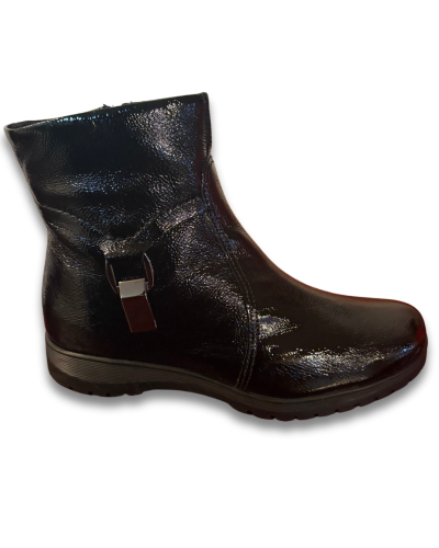 Bota Feminina Bottero 369202 em couro legítimo com verniz de qualidade. com cano médio, salto bloco de 5 cm, palmilha macia e sola antiderrapante. Fechamento prático em zíper lateral. Estilo e conforto garantidos.