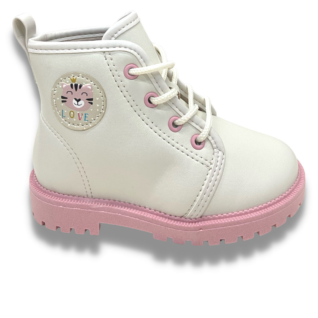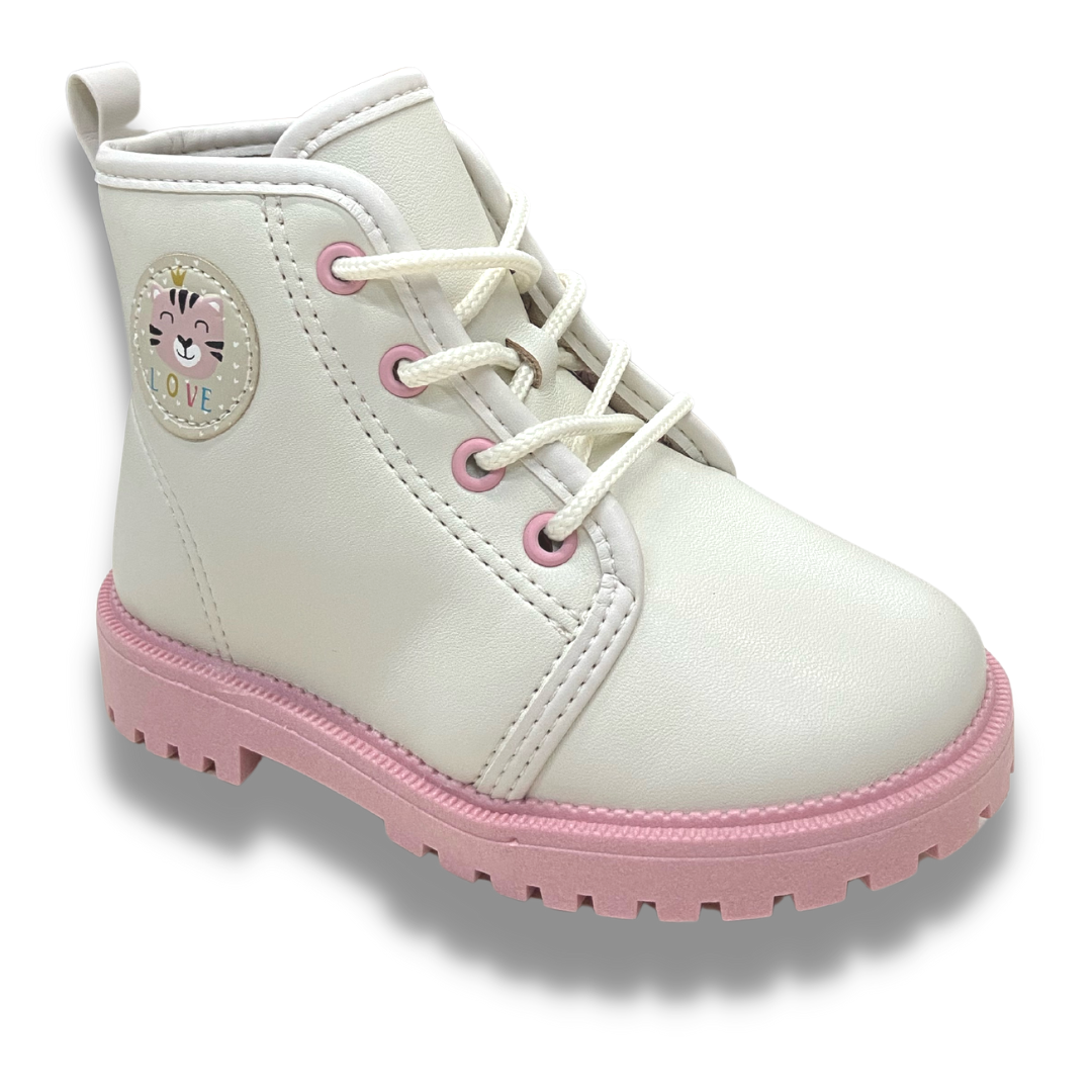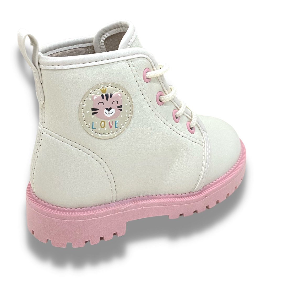 Bota em courino sintético, solado de borracha e cadarço trazendo firmeza no caminhar. Essa bota quentinha une o conforto da marca com o estilo das cores, tem um pequeno gatinha na lateral que da um charme. aproveite