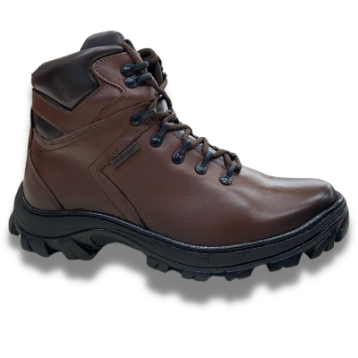 Bota em Couro super resistente, solado de borracha tratorado todo costurado, ilhós em aluminio e cadarço forte. Tem estrutura para trilhas e lugares que exigem o máximo.