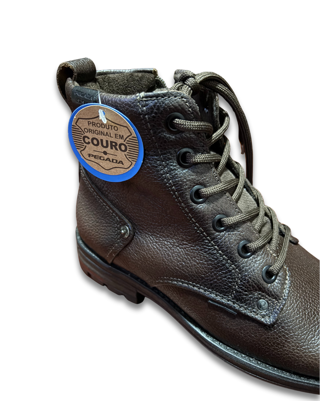 A Bota Masculina Pegada 181305 é produzida em couro legítimo de alta qualidade, oferecendo resistência e sofisticação. Possui fechamento por cadarço e zíper lateral, garantindo praticidade no calce e ajuste firme. O solado é em borracha antiderrapante, com a exclusiva tecnologia Amortech, que proporciona maior absorção de impactos. Com palmilha macia e forro interno acolchoado, é ideal para uso diário, viagens ou ocasiões casuais que pedem conforto e estilo.