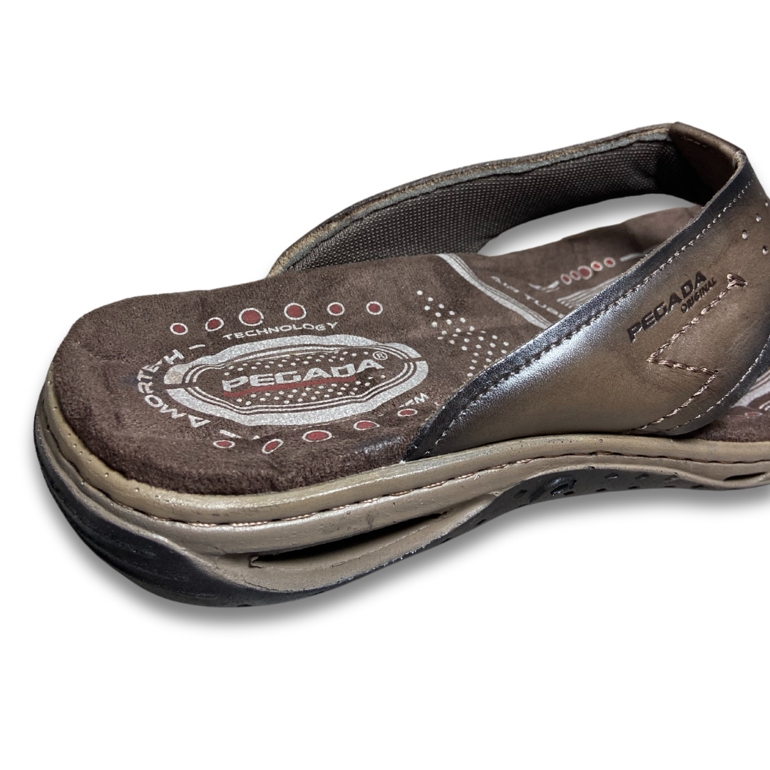 Chinelo Masculino Pegada em COURO e amortecimento no calcanhar. Ele é fabricado com material de alta qualidade e conforto fazendo assim seu melhor companheiro do verão.