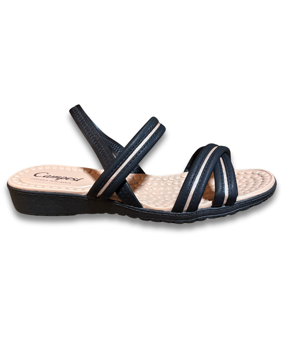 A Sandália Feminina Campesi CE222 oferece conforto e praticidade para o dia a dia. Produzida em material macio, possui tiras anatômicas que acomodam bem os pés. tem elástico que facilita o calce e garante melhor ajuste. A palmilha é ultra macia e anatômica, com tecnologia que absorve impactos e alivia a pressão ao caminhar. O solado em borracha leve e antiderrapante proporciona estabilidade e segurança. Ideal para uso prolongado, trabalho, passeios e rotina com conforto.