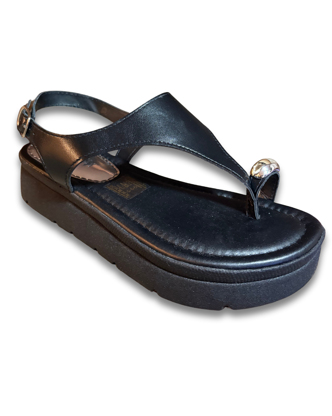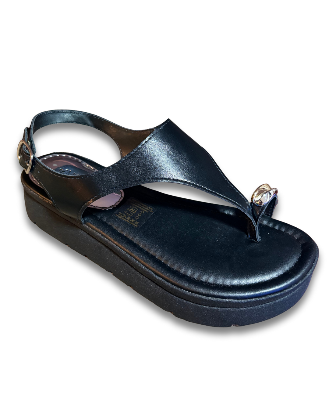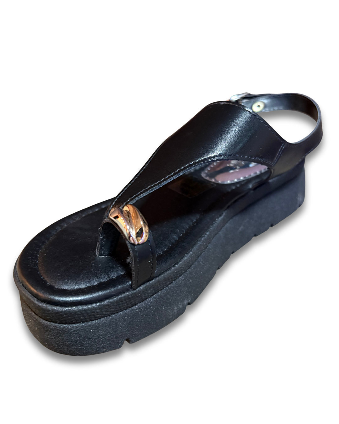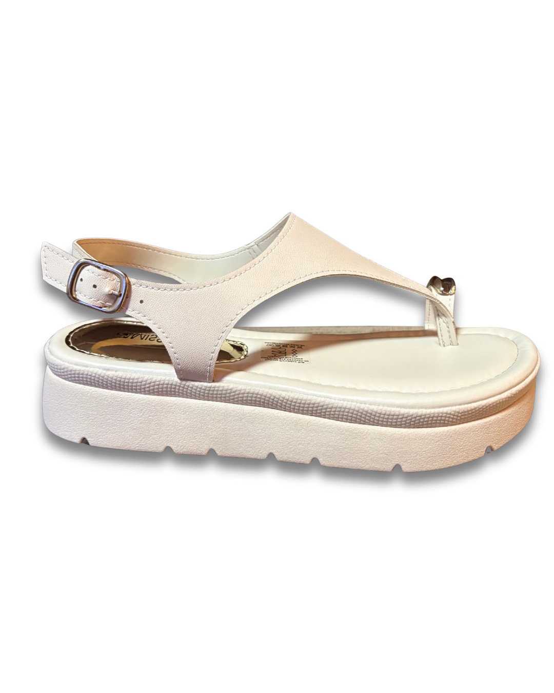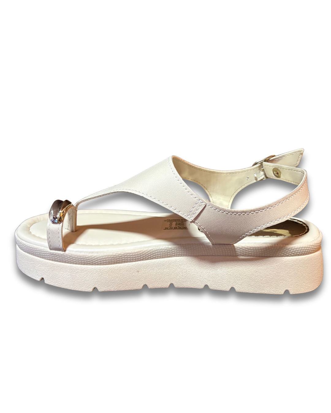 traz cabedal em material sintético com acabamento metalizado / verniz, com tiras decorativas que valorizam o visual. Possui plataforma (flatform) que oferece uma leve elevação sem comprometer a estabilidade nas passadas. O solado emborrachado / TR antiderrapante garante aderência em diversas superfícies. Ideal para composições casuais, eventos leves e visuais modernos com charme.