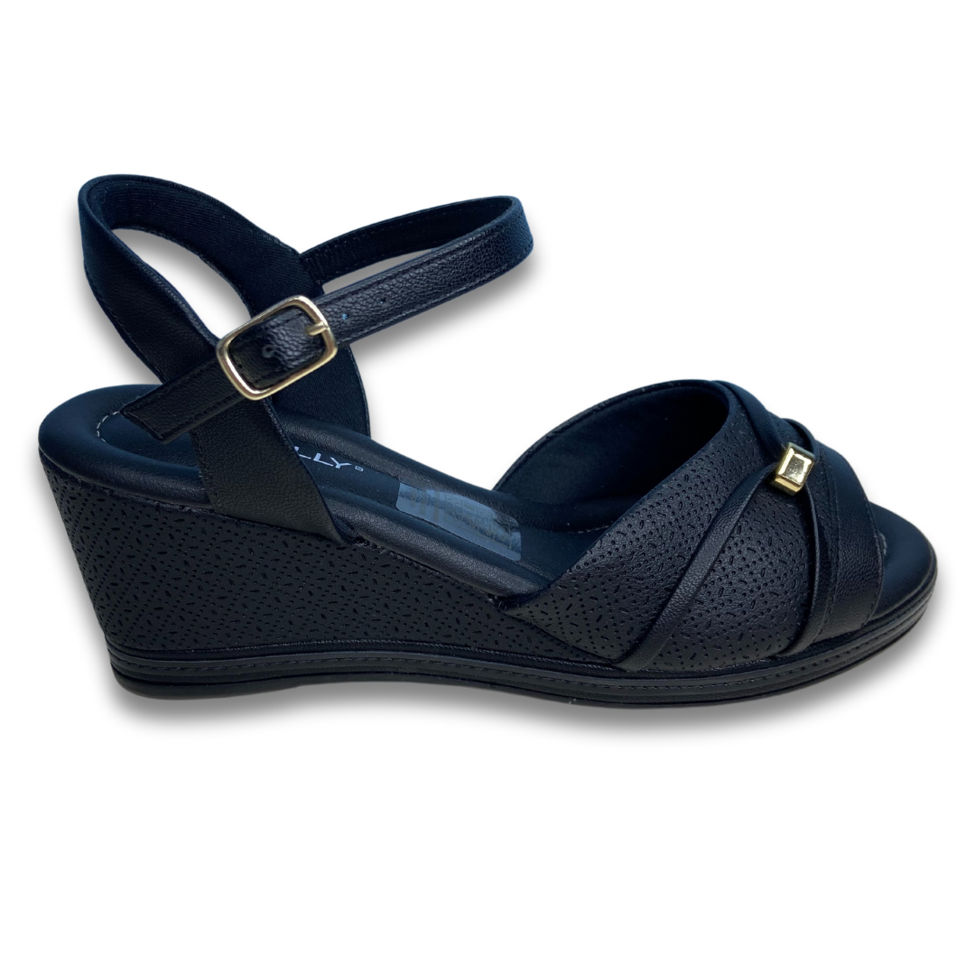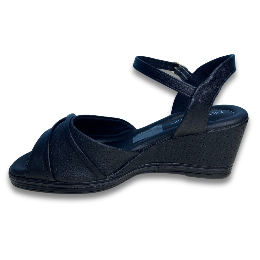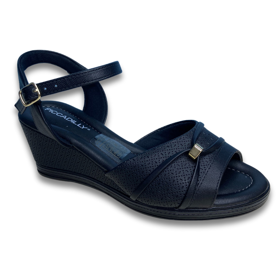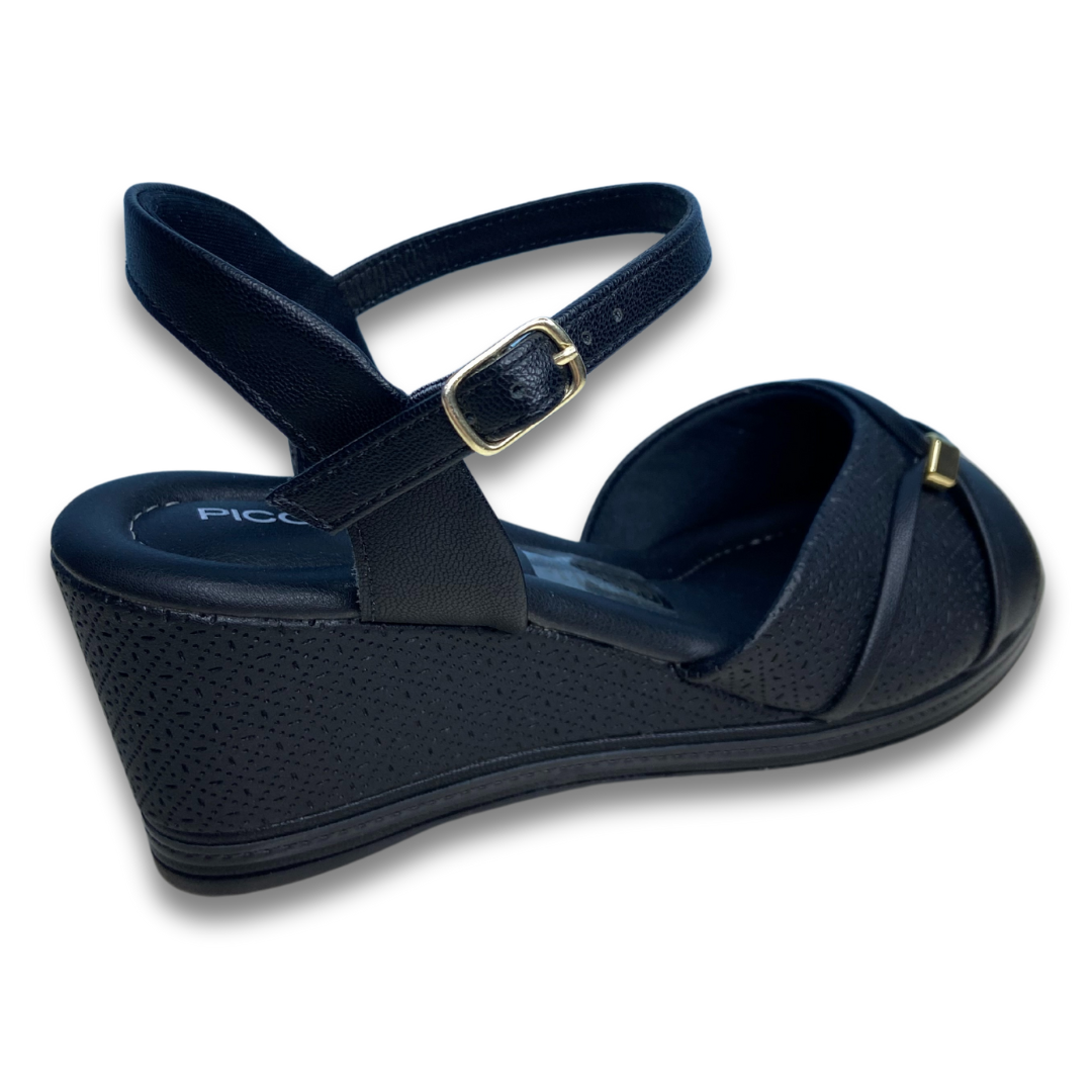 Sandália com salto anabela conhecido pelo conforto e estabilidade na hora do caminhar. Tem palmilha conforto e solado de borracha. Fivela no tornozelo para firmeza. Produto Piccadilly marca consolidada no mercado de produtos confortáveis de qualidade.