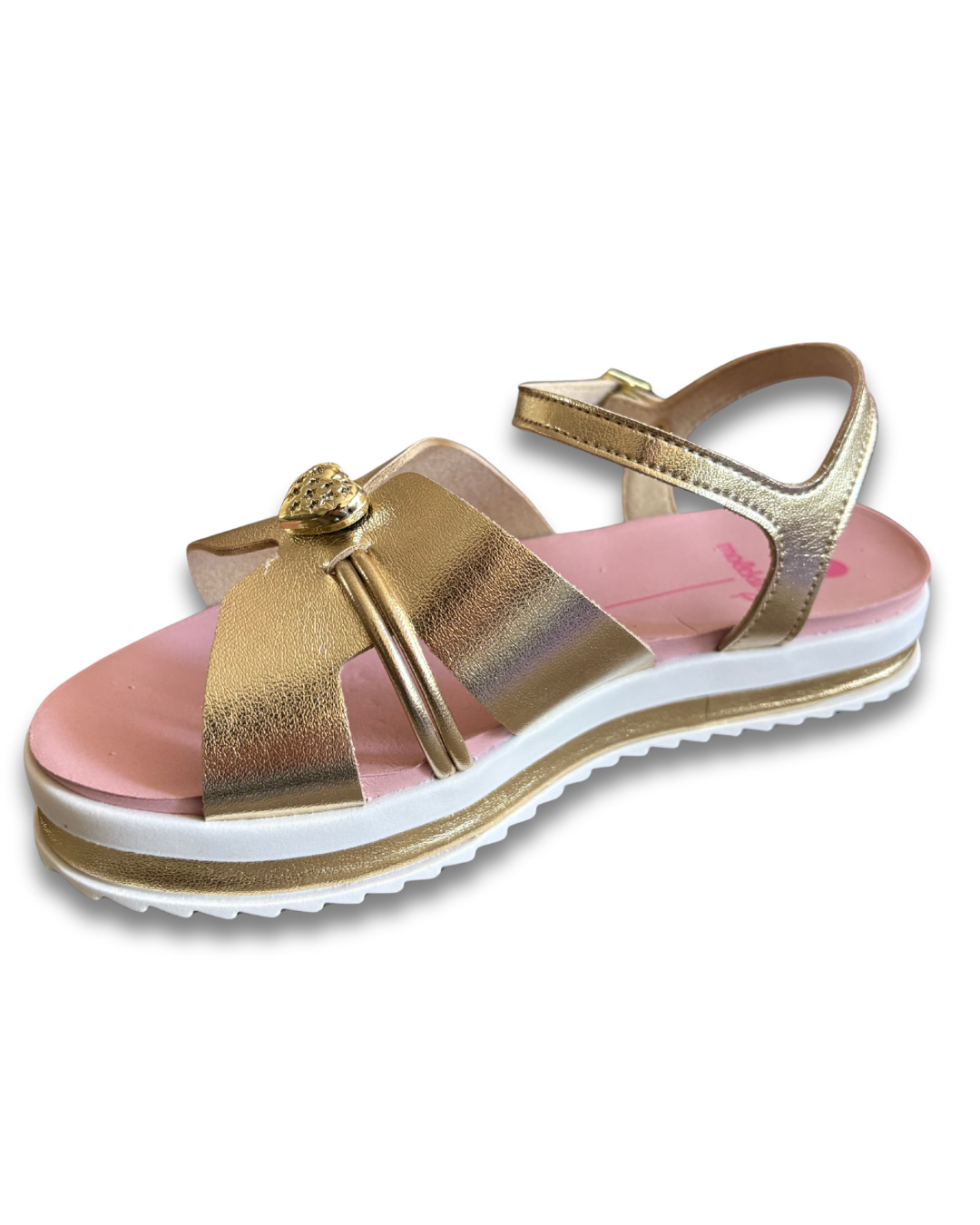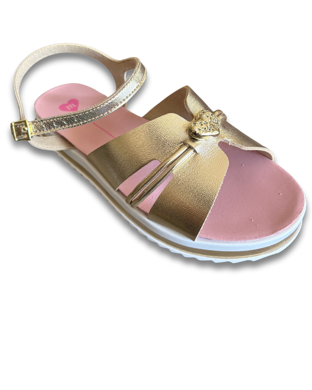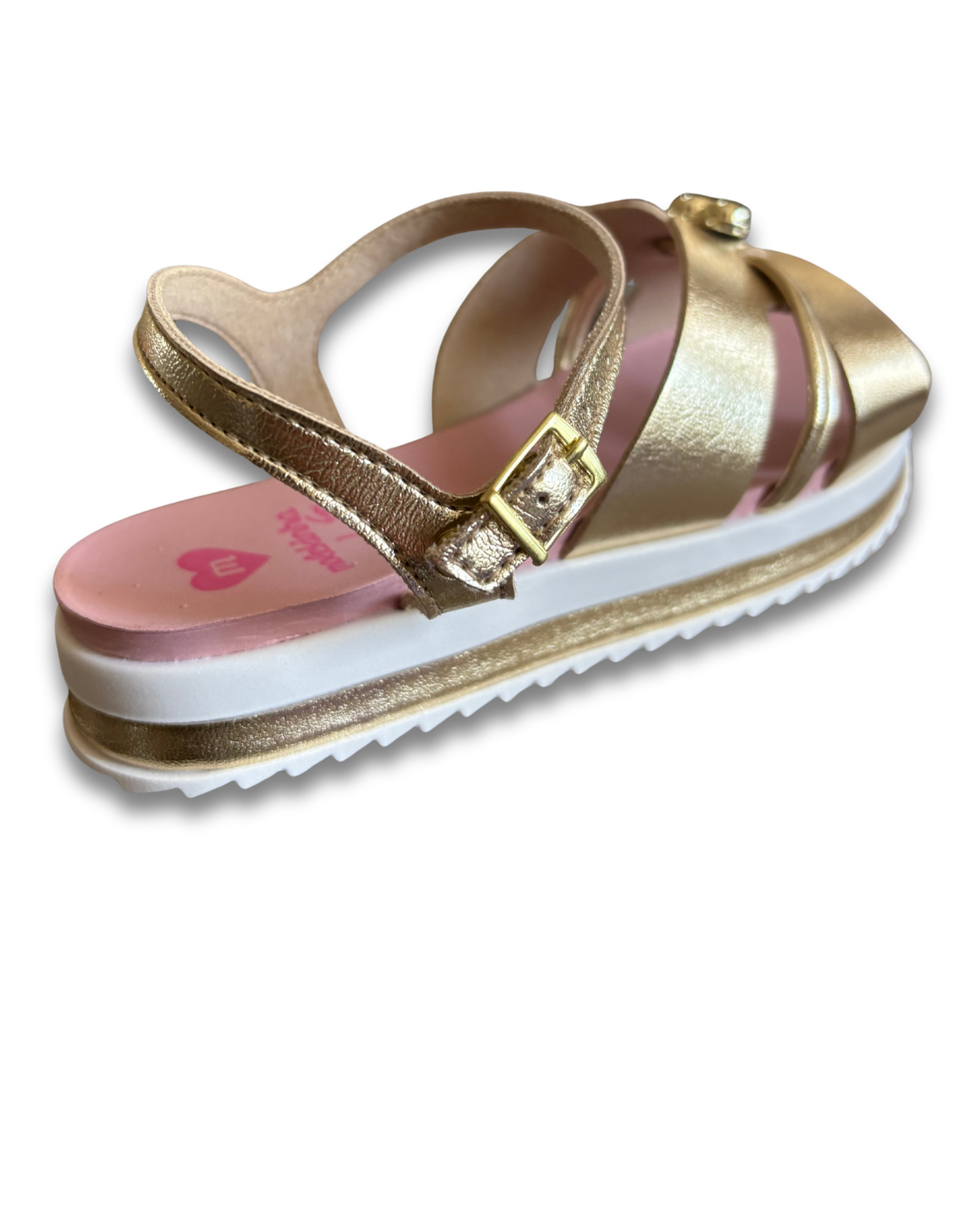 sandália com tiras confortáveis e ajuste no tornozelo, palmilha macia e solado de borracha. Com esse conforto e os brilhos que estão pelas tiras e na lateral do solado, ela une o estilo com conforto deixando sua pequena preparada para o verão.