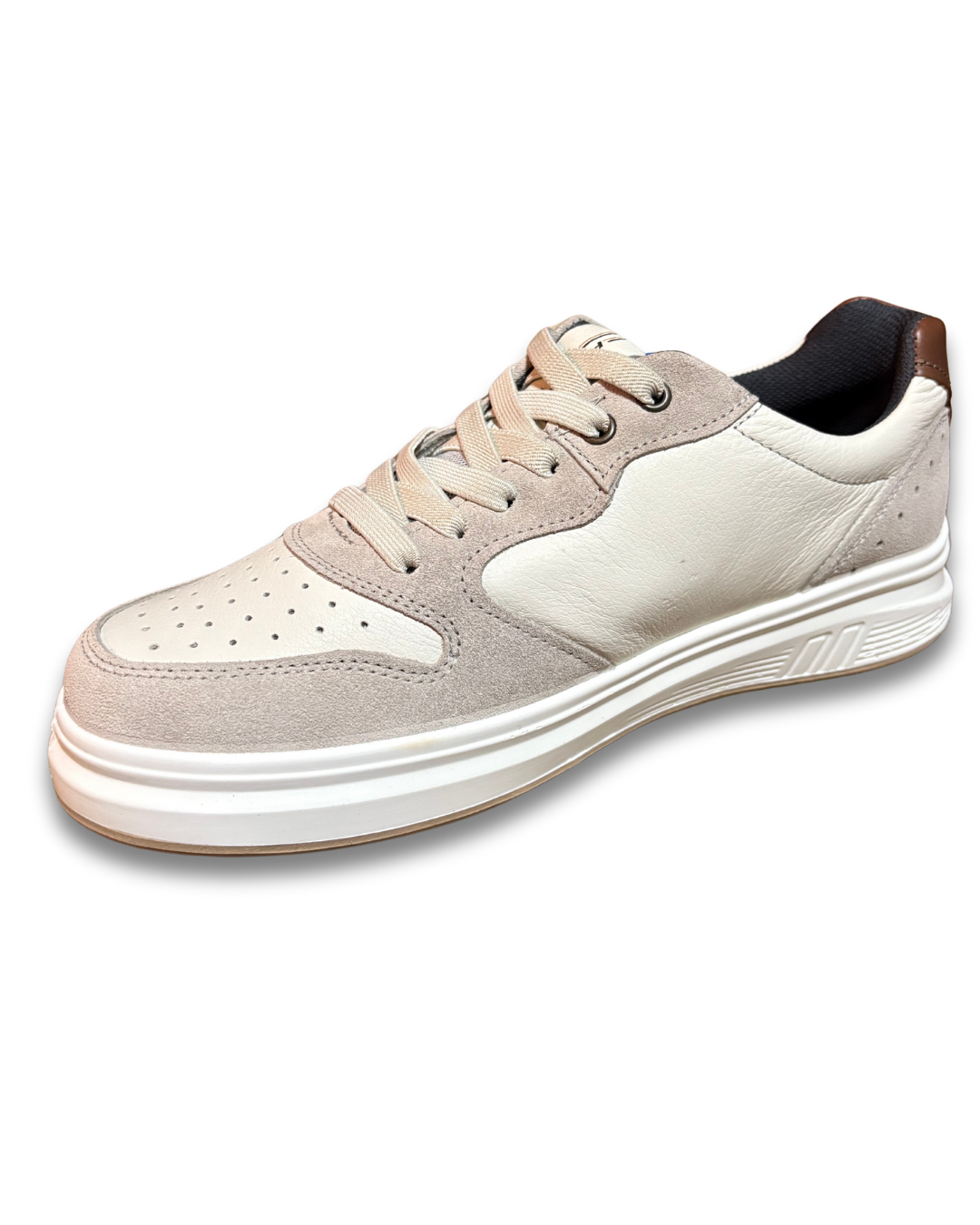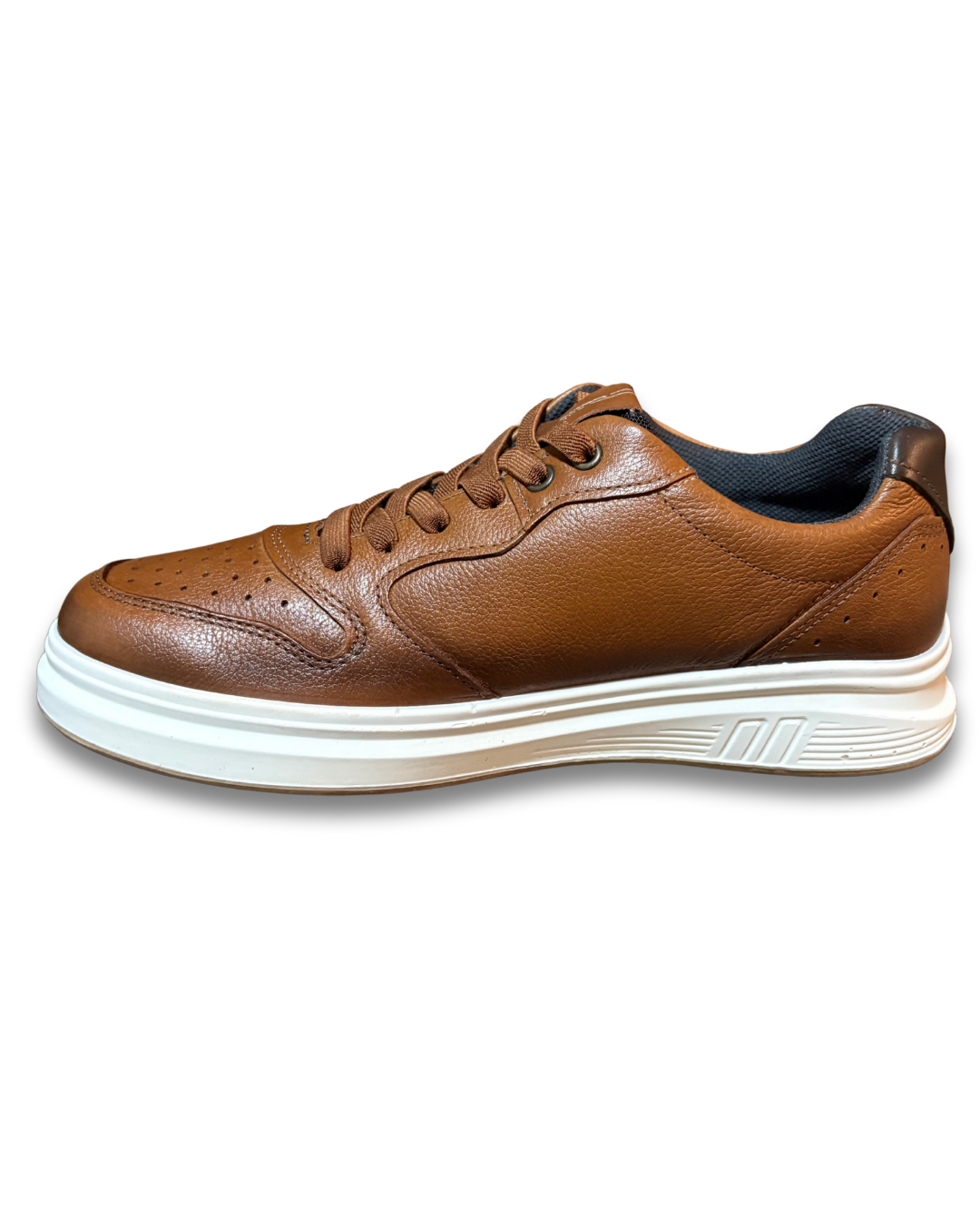 Confeccionado em couro de alta qualidade, o cabedal oferece maciez, resistência e visual refinado. O forro em tecido espumado garante respirabilidade e mantém os pés secos. A palmilha em EVA macio proporciona amortecimento leve. Além disso, o solado é produzido por injeção direta no cabedal, o que torna o calçado mais durável, leve e flexível. Para facilitar o calce, o modelo tem “Calce Fácil” com cadarço elástico, que permite ajuste prático sem comprometer o visual