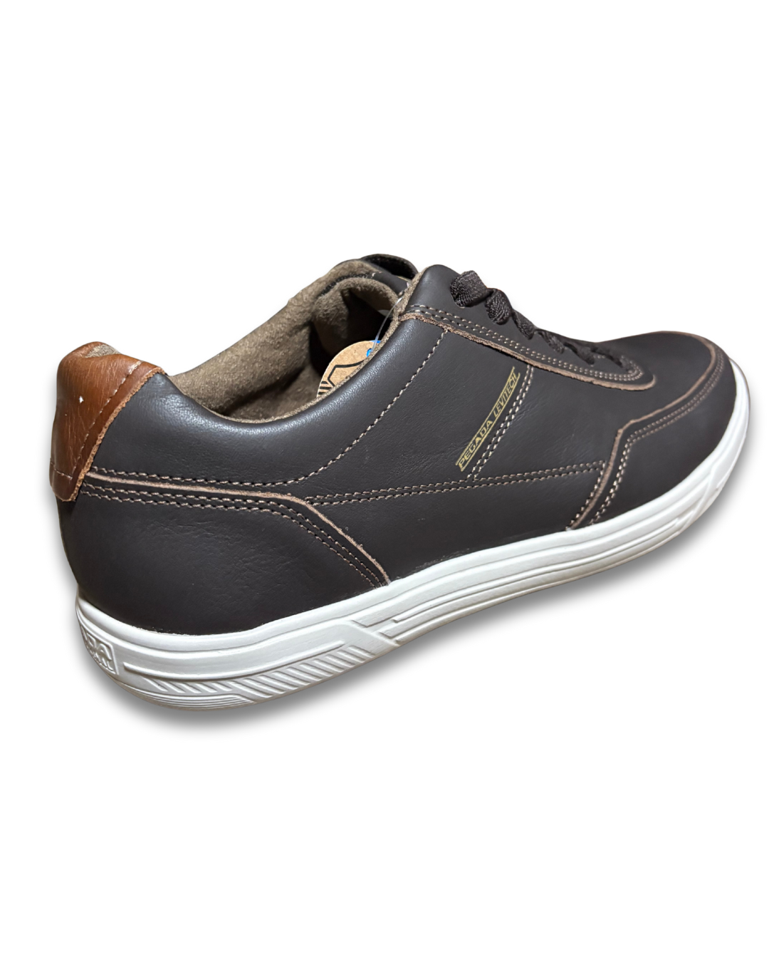 Produzido em couro legítimo, garante resistência e estilo moderno. Conta com forro têxtil macio que favorece a respirabilidade e palmilha anatômica com tecnologia Float, que oferece maior conforto ao caminhar. O solado em borracha antiderrapante proporciona segurança e flexibilidade. Ideal para o uso casual e social descontraído, combina sofisticação e praticidade.