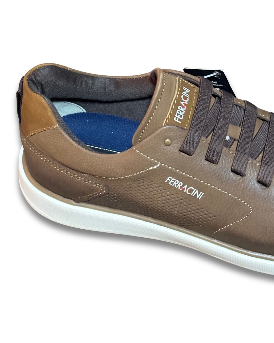 Sapatênis Ferracini tem cabedal em couro legitimo e super confortável, a marca tem como diretriz o conforto e faz jus, solado de borracha costurado, palmilha e foro super conforto, amarração em elástico para facilitar o calce.