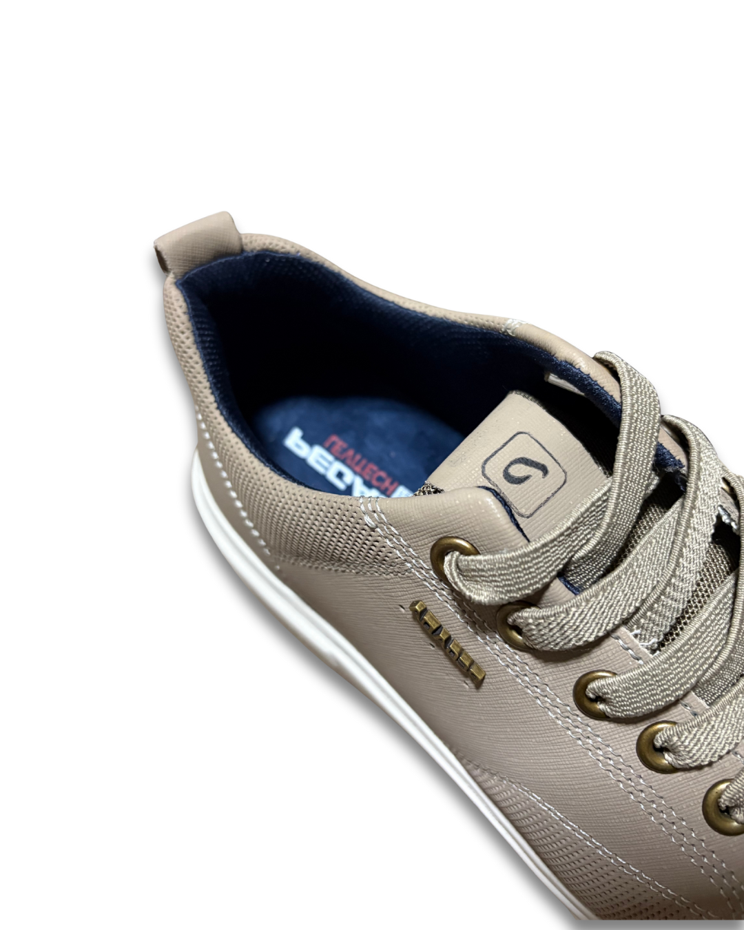 Confeccionado em couro de alta qualidade, o cabedal oferece maciez, resistência e visual refinado. O forro em tecido espumado garante respirabilidade e mantém os pés secos. A palmilha em EVA macio proporciona amortecimento leve e toque acolhedor . Além disso, o solado é produzido por injeção direta no cabedal, o que torna o calçado mais durável, leve e flexível . E, para facilitar o calce, o modelo incorpora o sistema “Calce Fácil” com cadarço elástico
