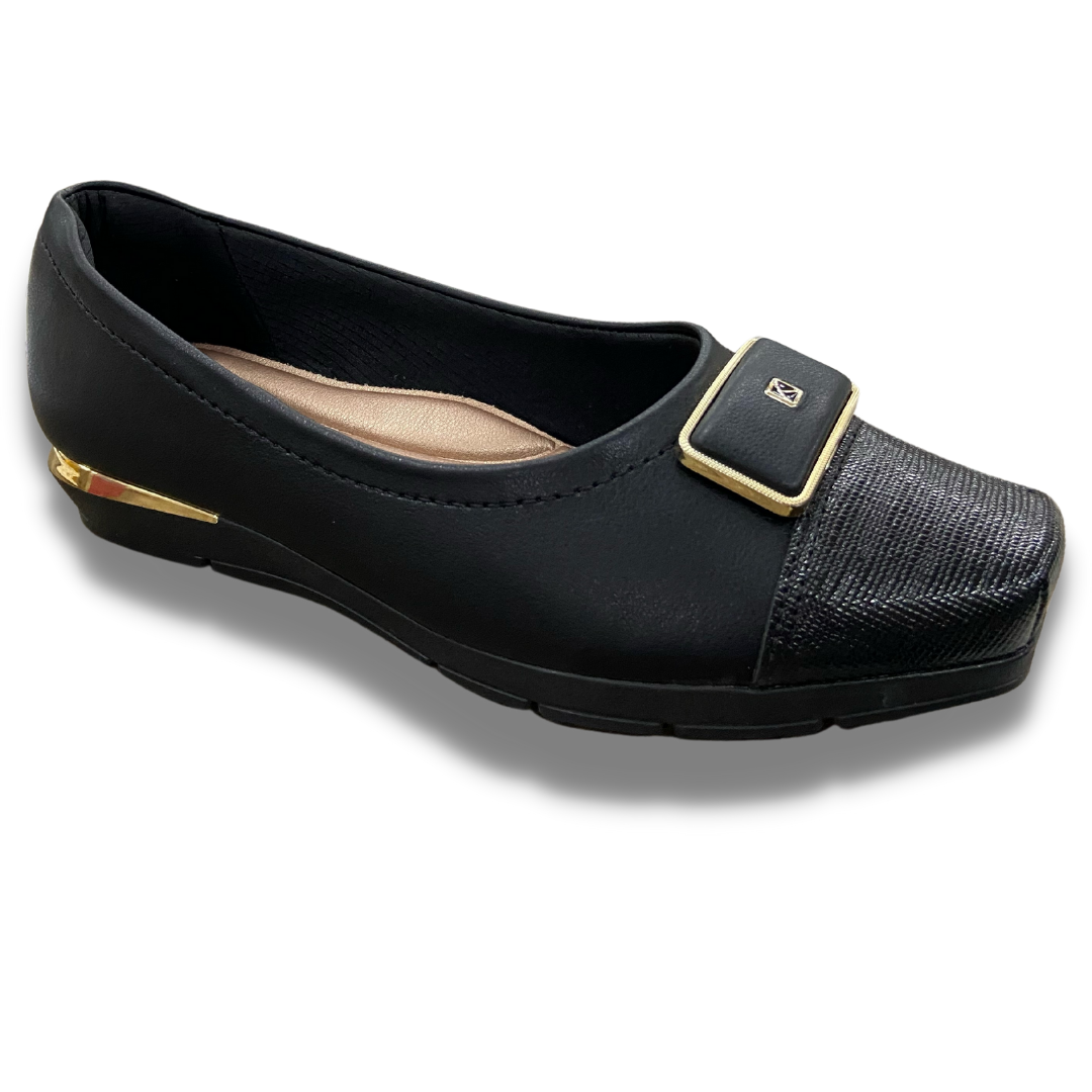 Sapato ultra conforto Modare, com cabedal trabalhado e uma corrente discreta na parte da frente trás muito estilo e elegância ao modelo.