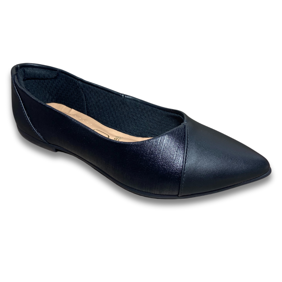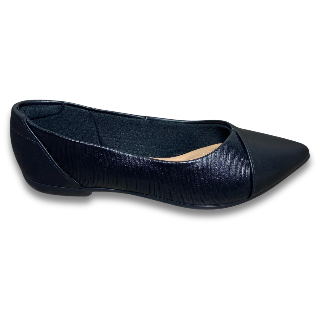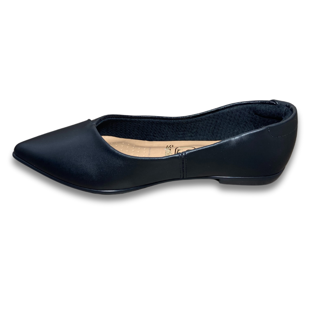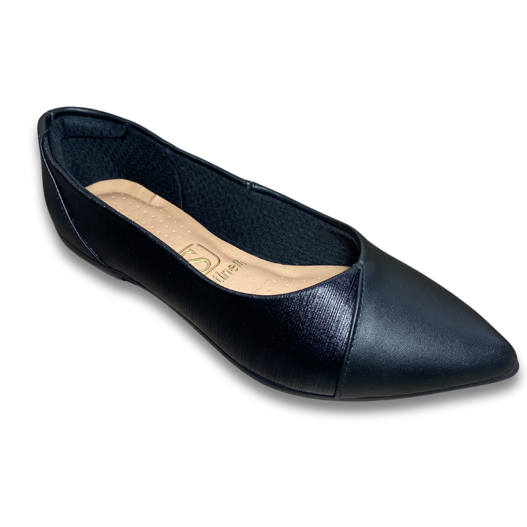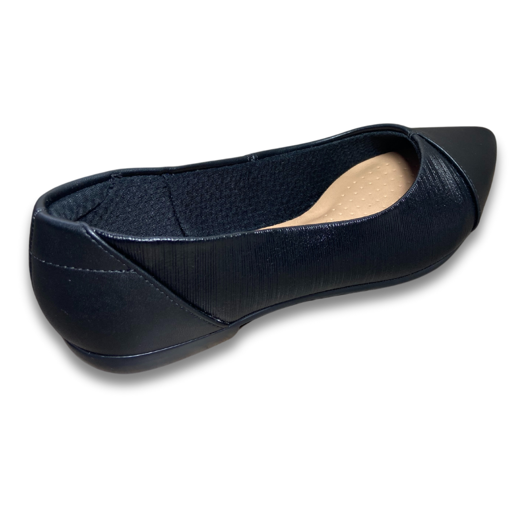 O cabedal é confeccionado em materiais de alta qualidade, oferecendo um toque suave e um ajuste confortável aos pés. Com design clássico de bico fino, a sapatilha se adapta facilmente tanto a looks casuais quanto formais, sendo ideal para o trabalho ou passeios. A palmilha acolchoada garante um conforto adicional, proporcionando um caminhar mais macio e agradável, mesmo em longos períodos de uso.