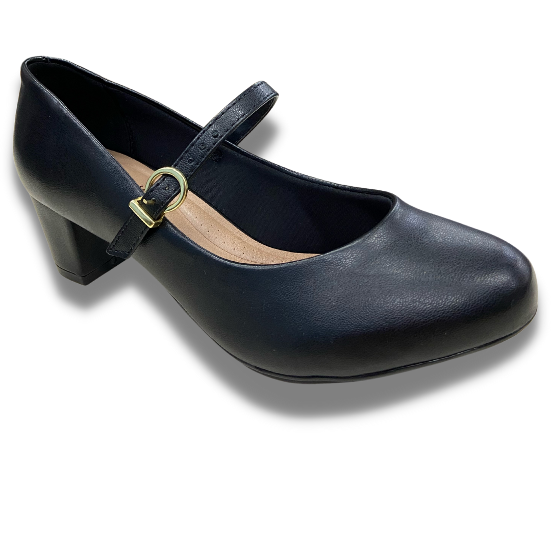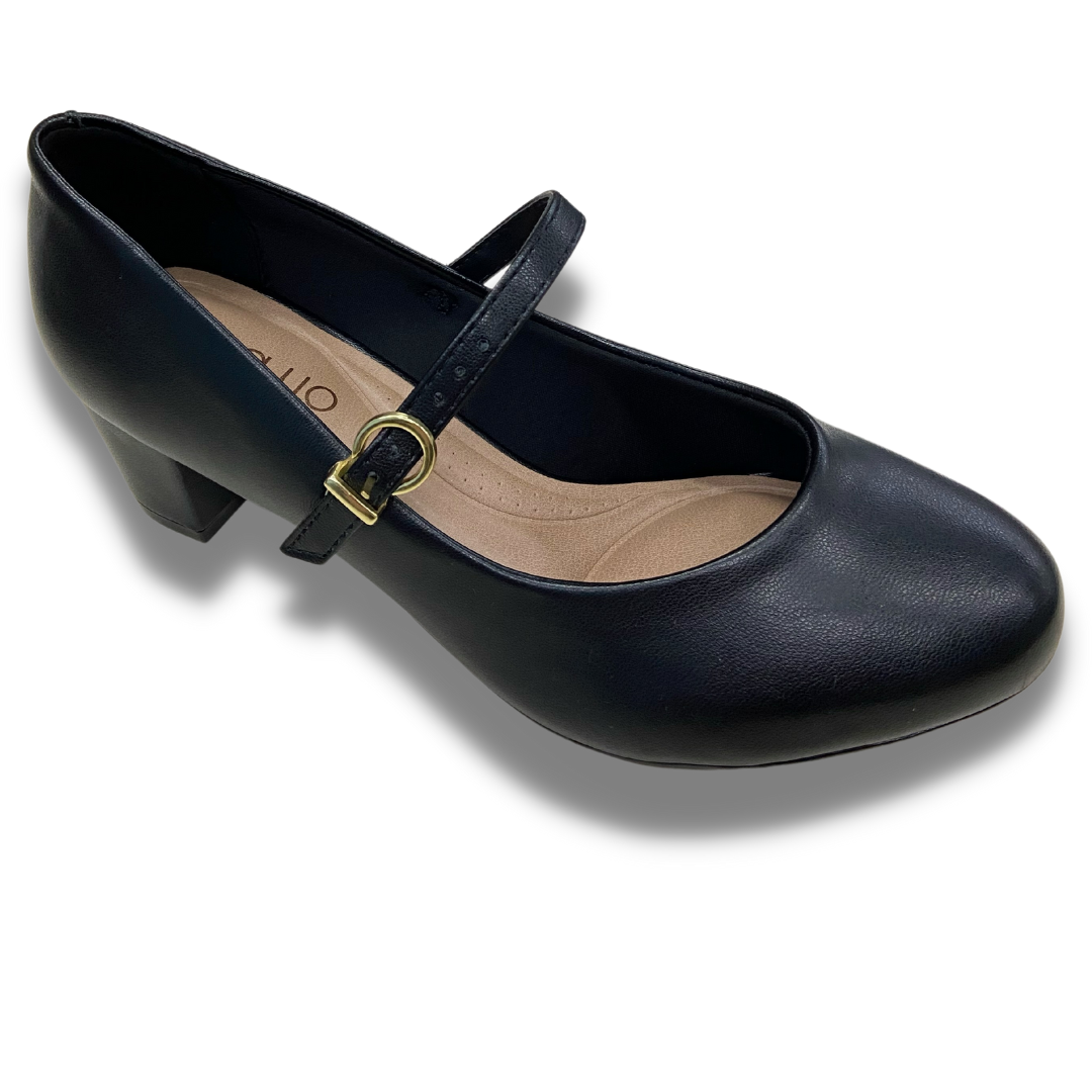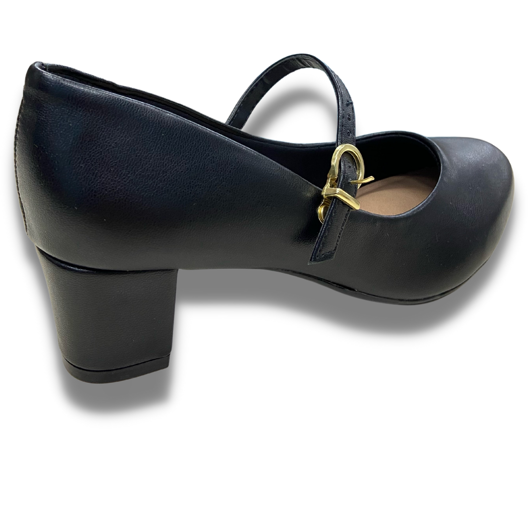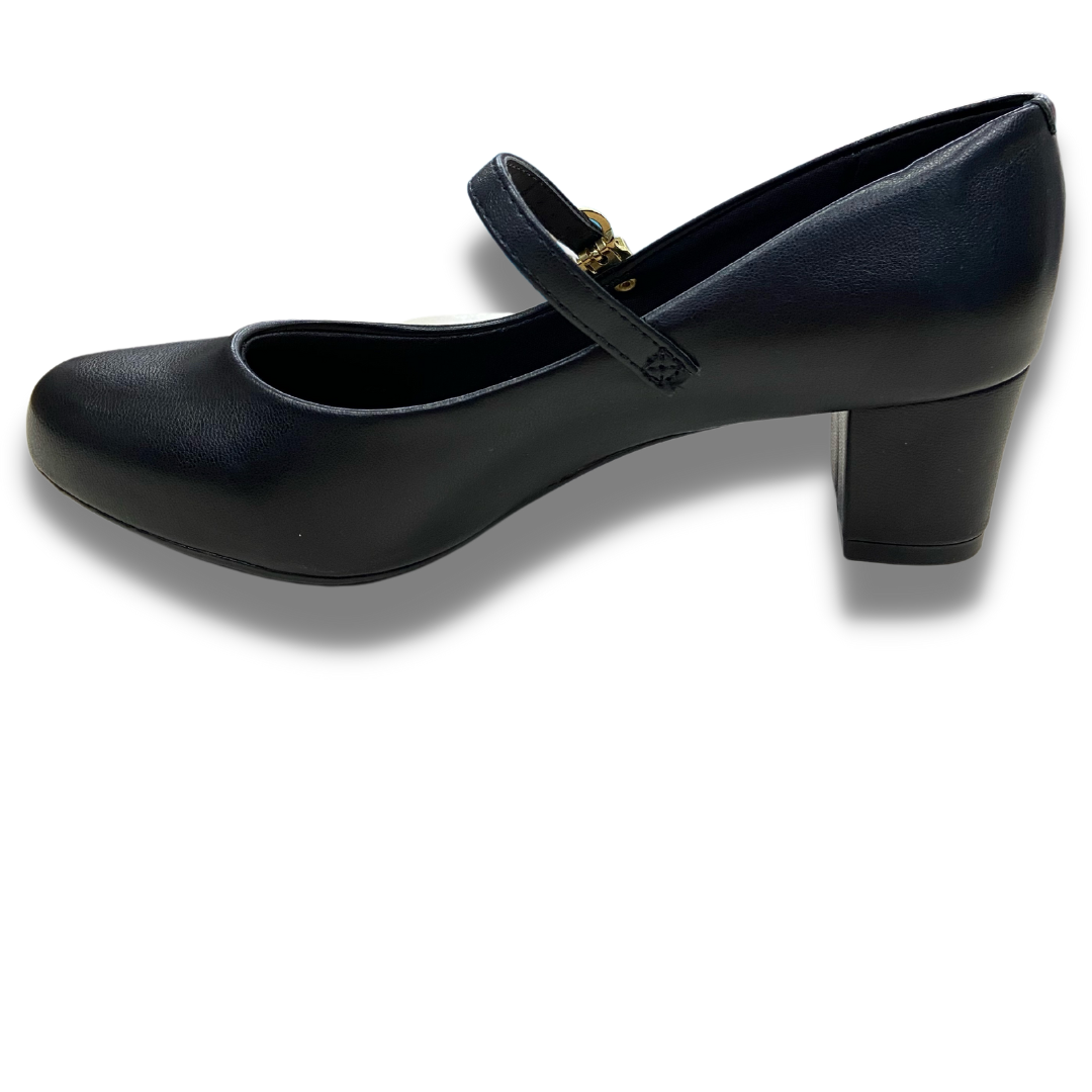 Sapato pensado para o total conforto, salto quadrado de 5cm e solado de borracha, palmilha com tecnologia de espuma conforto, bico redondo e uma sutil tira que passa por cima do pé trazendo firmeza para o dia a dia.