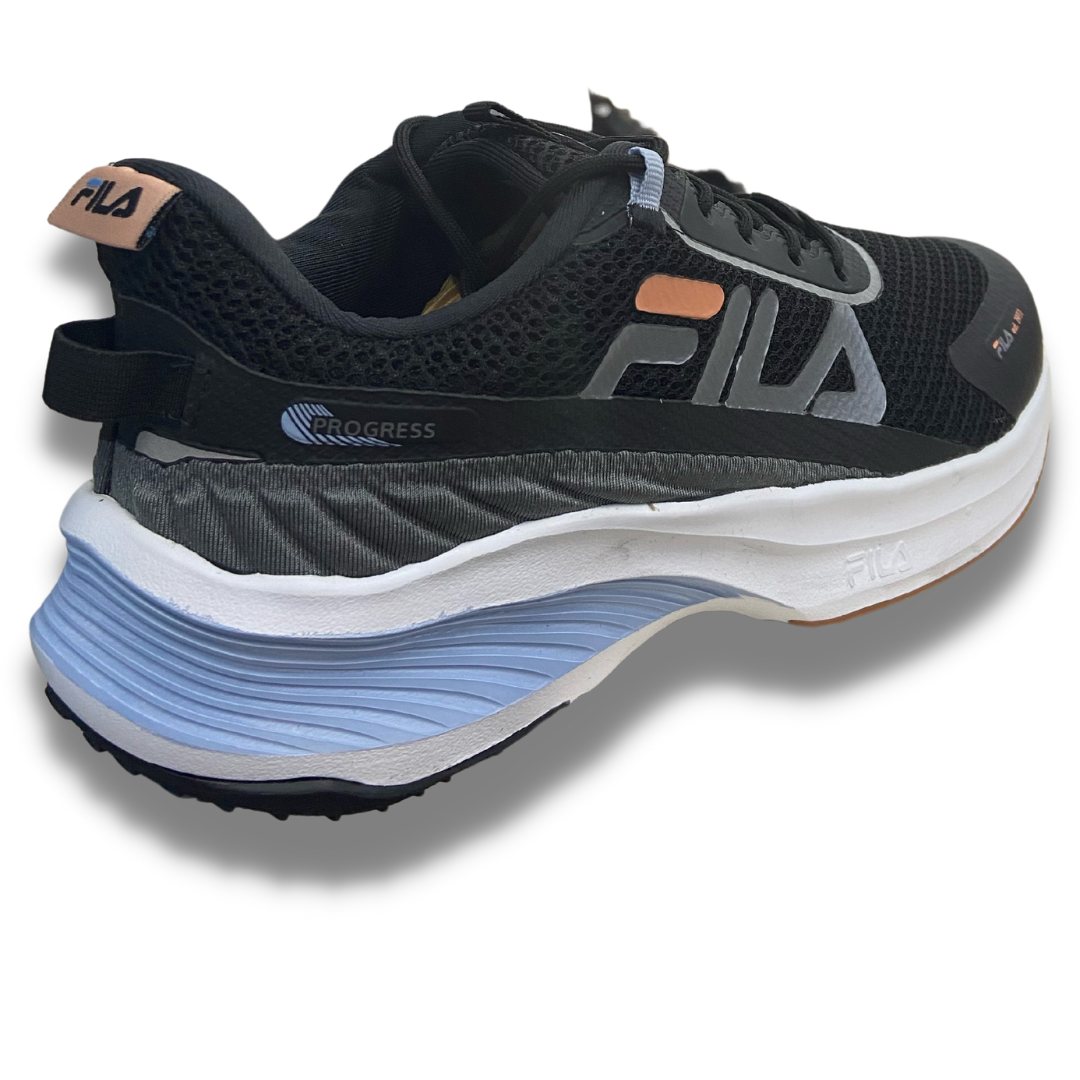 O Tênis Fila Progress traz linhas orgânicas em um design despojado, ideal para quem está sempre em movimento, seja na correria diária ou nos treinos. Com inspiração nos melhores produtos da categoria Running da FILA, ele traz amortecimento, retorno de energia e estabilidade em um modelo versátil e atemporal. Cabedal (parte superior do tênis) produzido em Mesh super respirável e bloco sintético com relevos envolvendo o calcanhar que proporciona suporte e conforto durante o uso. Possui fita horizontal estilizada na parte traseira e atacador diferenciado para fit mais sensorial com sustentação. Desenvolvido para oferecer maciez e aterrissagem mais suave, combinada peças blocadas de TPU na região plantar, que envolve as laterais inferiores e a biqueira frontal para proporcionar uma saída mais segura, ampliando a aderência ao solo e melhor grip a cada passada.