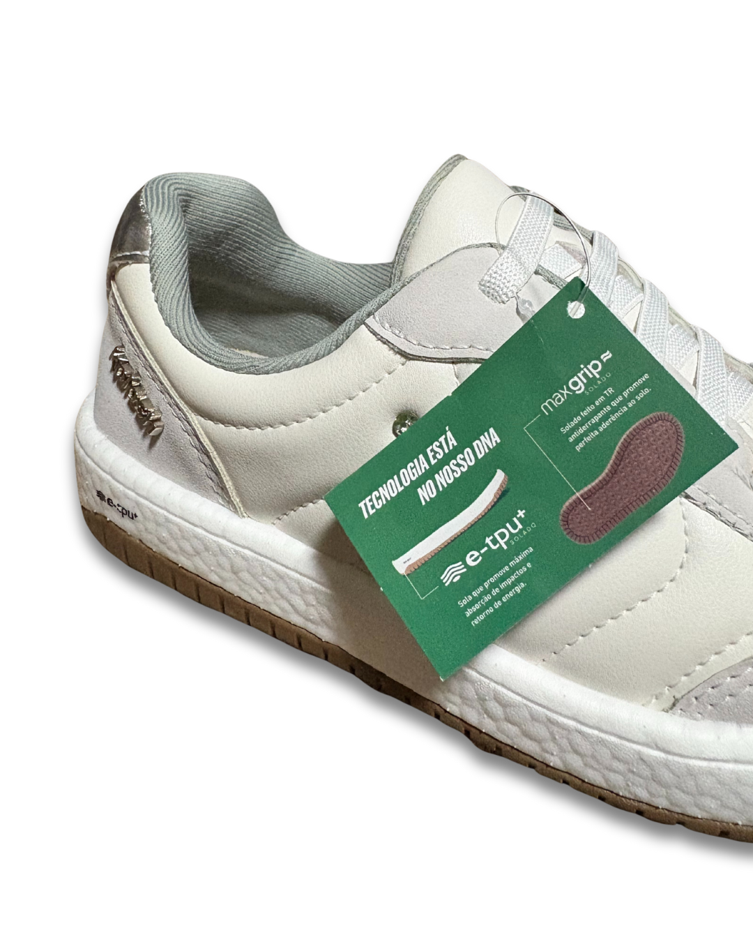 O Tênis Feminino Kolosh Foggia C4181 oferece elegância e praticidade em cada detalhe. Seu cabedal em material sintético leve conta com recortes e volumes laterais modernos, além de aplicações de strass brilhante e um pin metalizado da marca