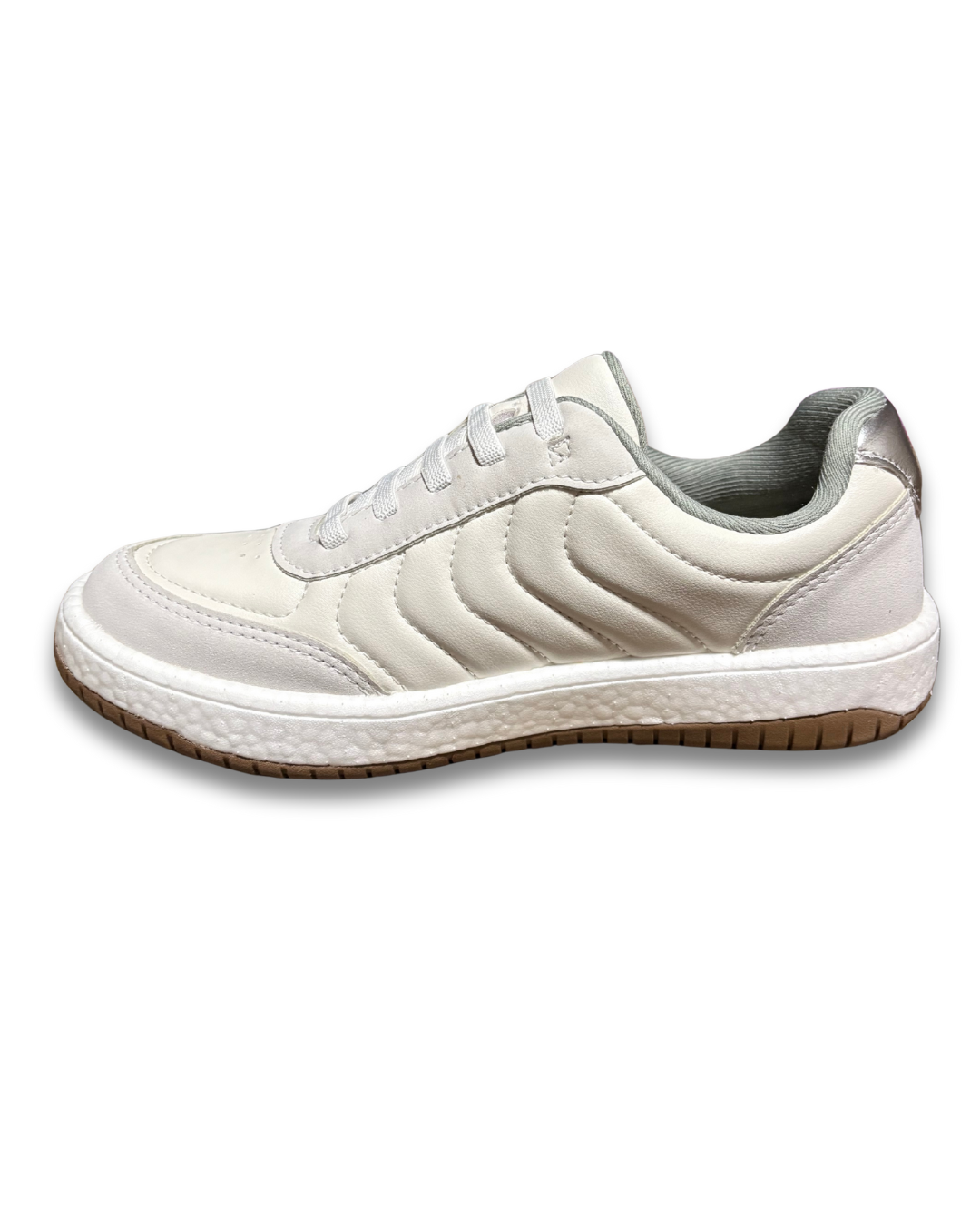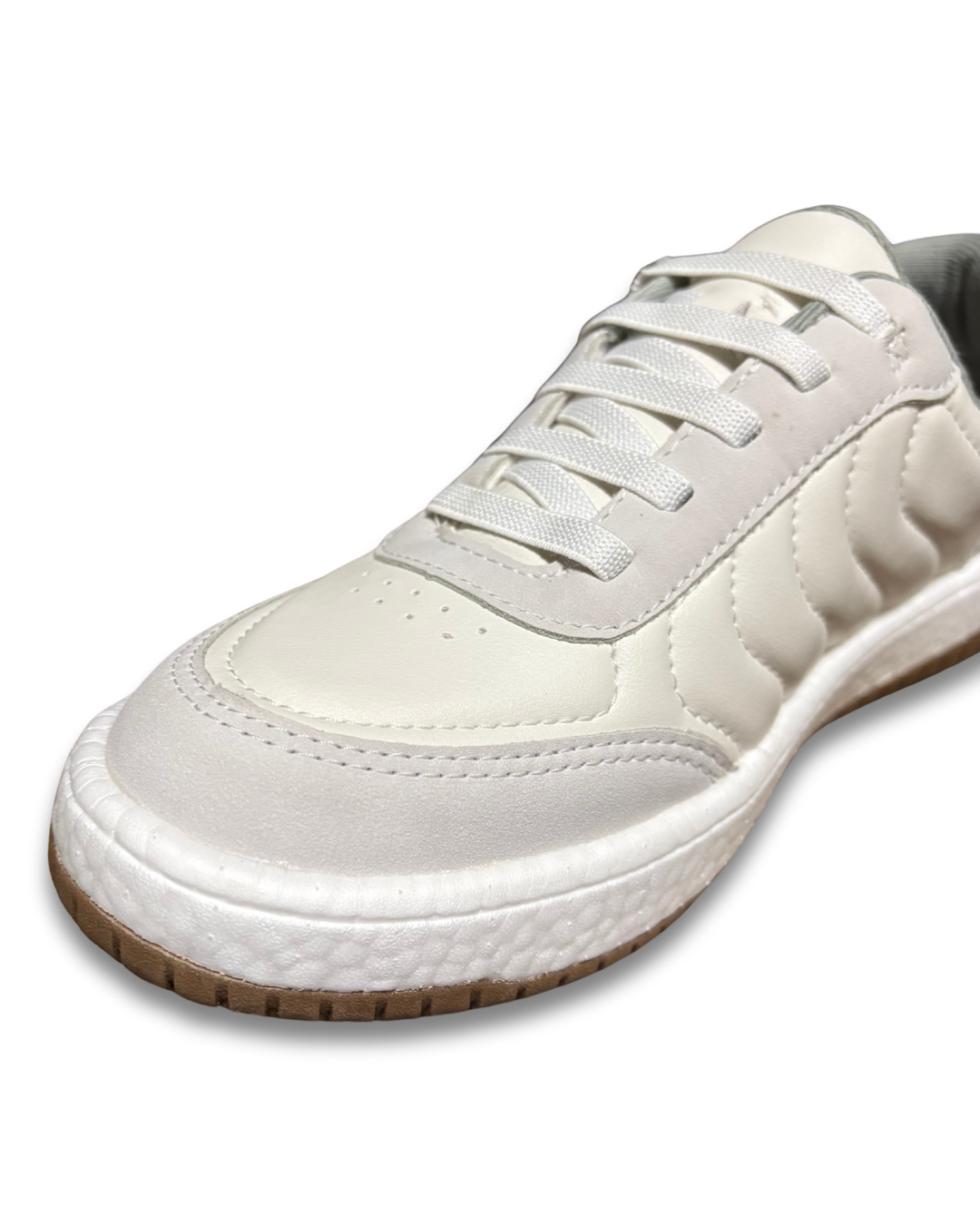 Com fechamento em cadarço elástico, o calce é rápido e confortável, sem comprometer o ajuste ao pé. A palmilha em PU proporciona conforto acolchoado, enquanto a sola levemente elevada (aprox. 3 cm) em TPU ou similar oferece leveza e estabilidade para o dia a dia