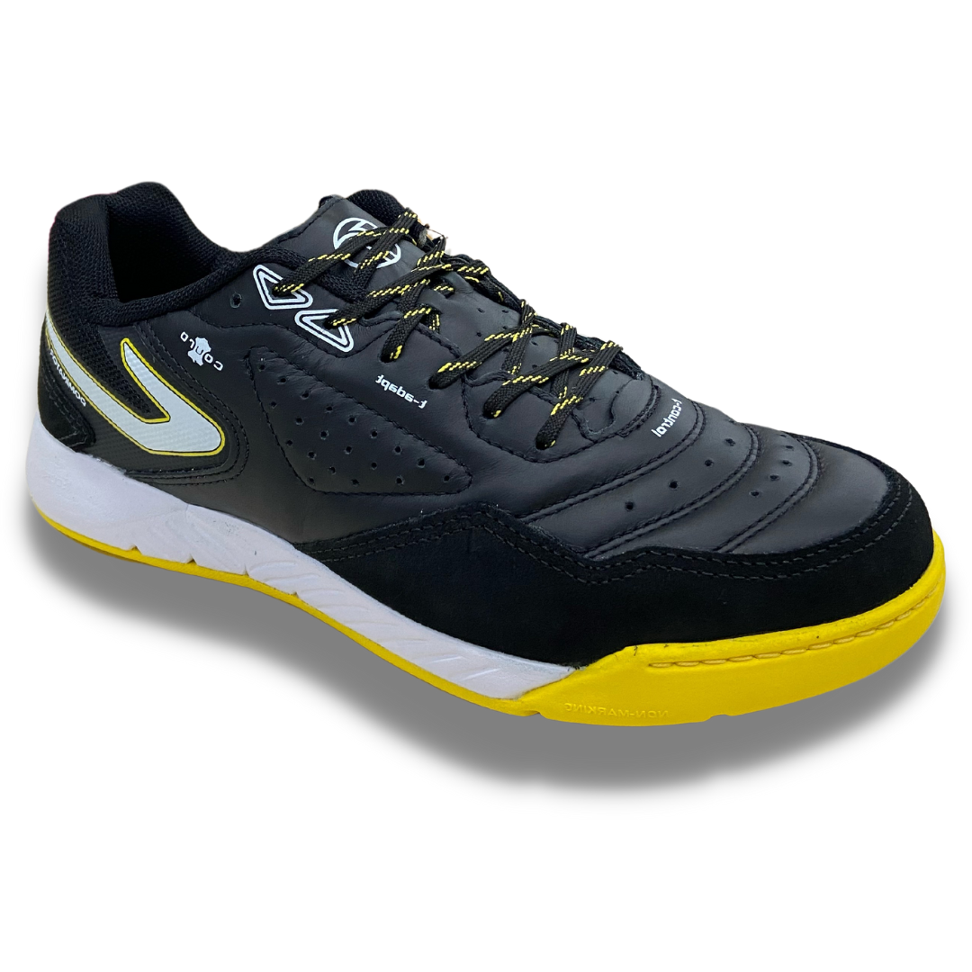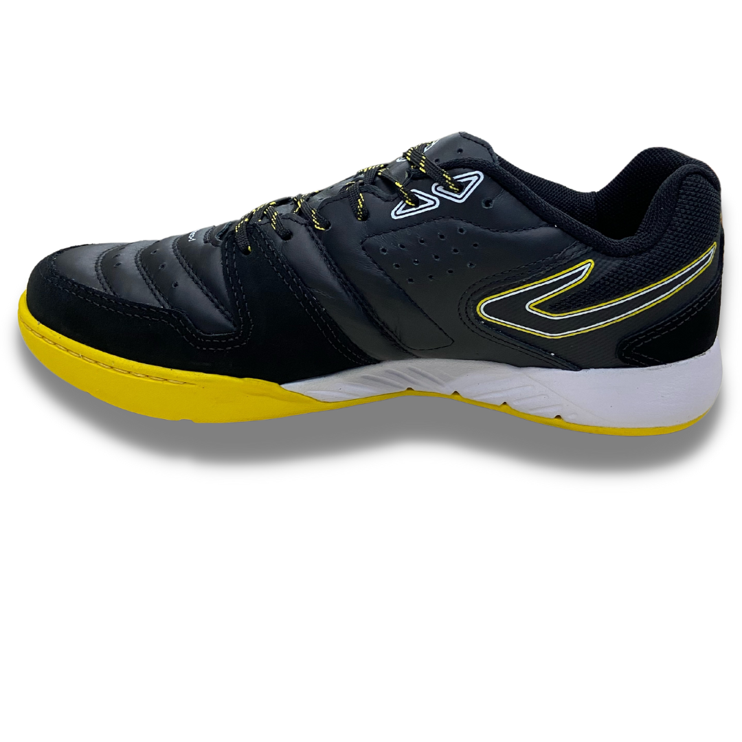 ideal para jovens atletas que buscam desempenho e conforto nas partidas indoor. O cabedal em material sintético laminado oferece resistência e toque de bola preciso. O forro em poliéster garante um ajuste confortável e respirabilidade. A palmilha em EVA + poliéster proporciona amortecimento eficiente. Já o solado misto (60 % EVA + 40 % borracha) combina leveza e aderência, sendo apropriado para quadras de futsal. O modelo oferece tração confiável e estabilidade nas movimentações rápidas. Usos ideais: treinos, jogos e prática de futsal indoor.