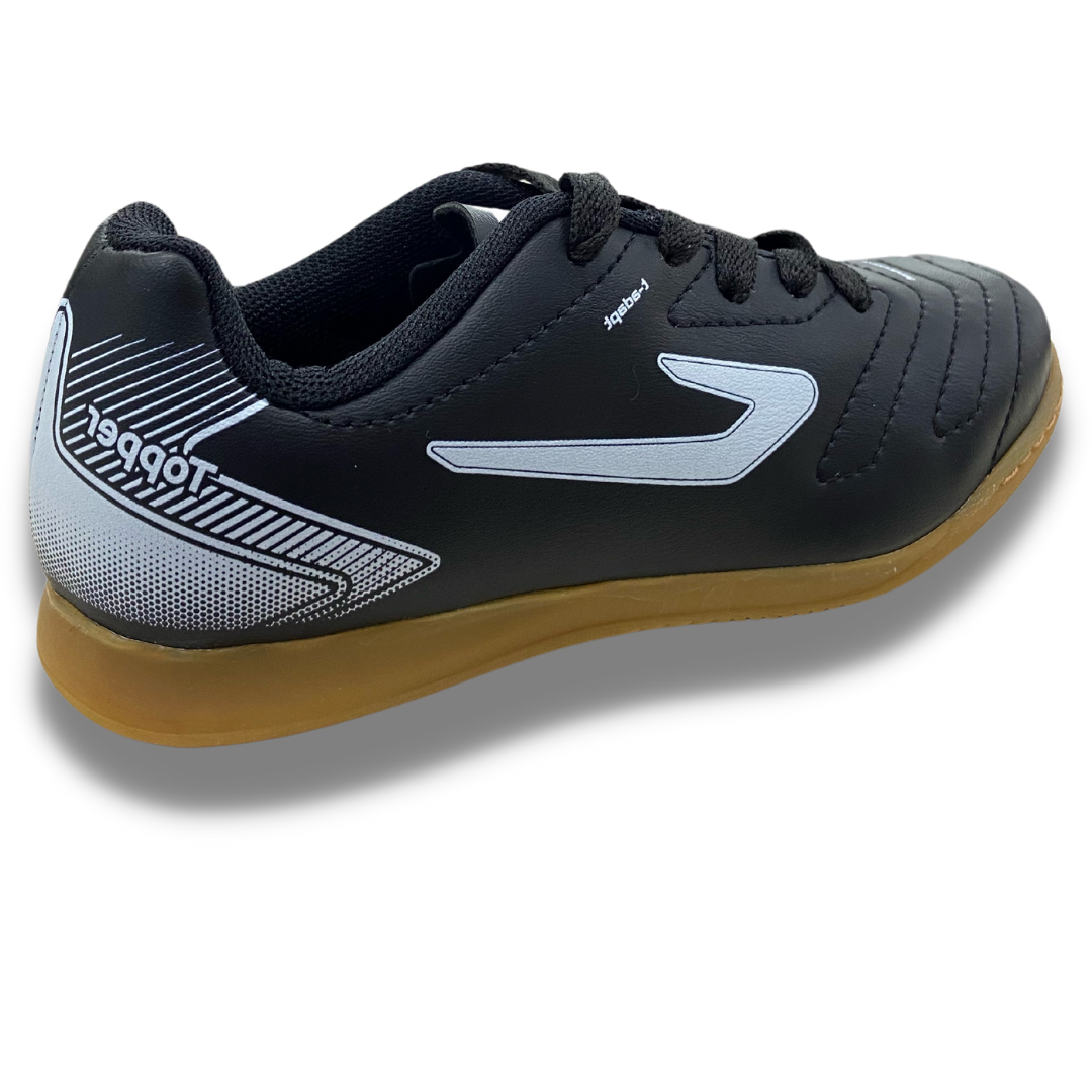 Brilhe dentro das quatro linhas jogando com a Chuteira Futsal Infantil Topper Cup. Tem design arrojado com cabedal confeccionado em sintético com costuras para maior durabilidade, além de calcanhar acolchoado e fecho em cadarço para ajuste firme e eficiente.O tênis futsal possui também uma camada de EVA presente na entressola para amortecimento leve e um solado emborrachado antiderrapante que te oferece mais segurança para arriscar dribles, passes e chutes nas quadras.