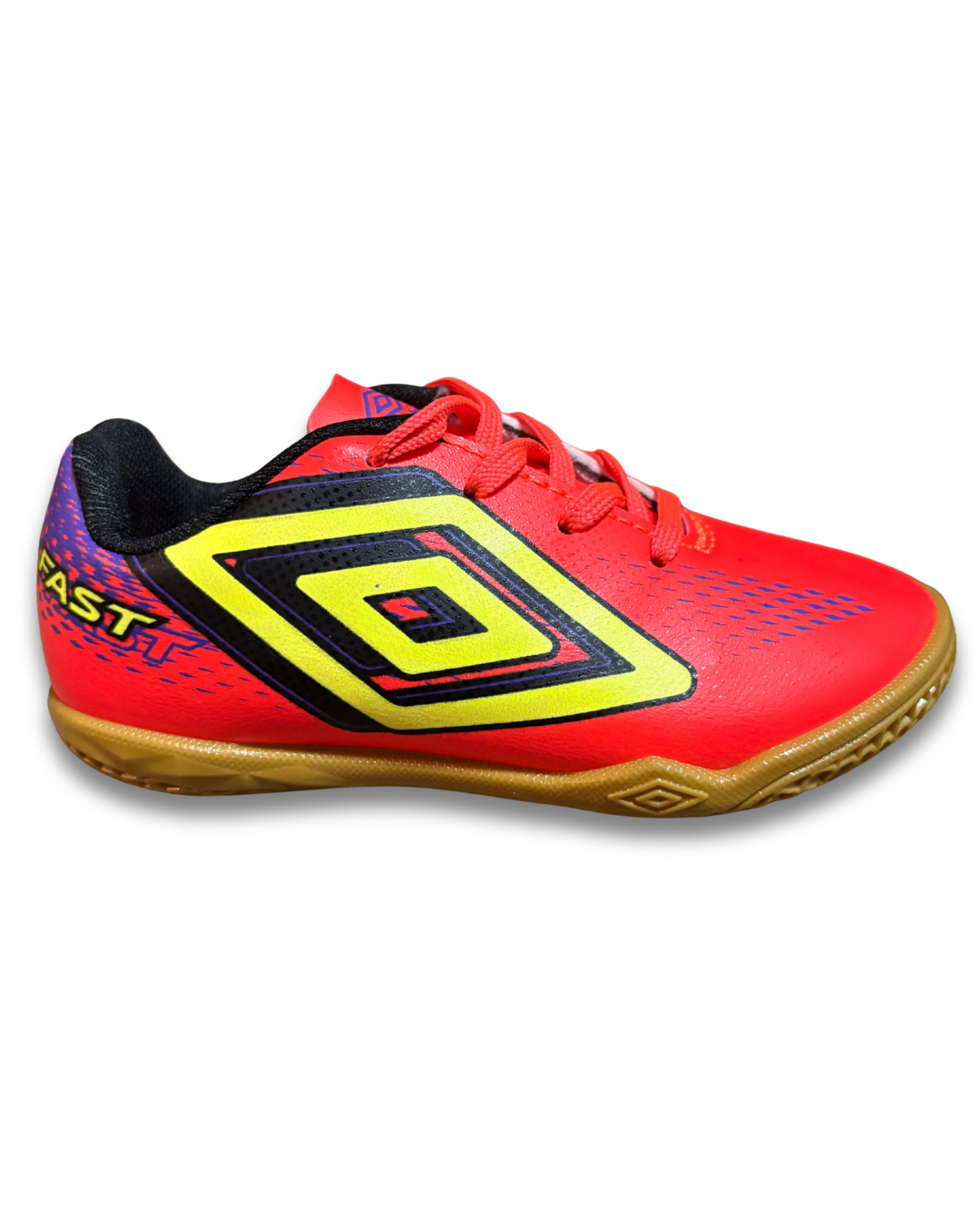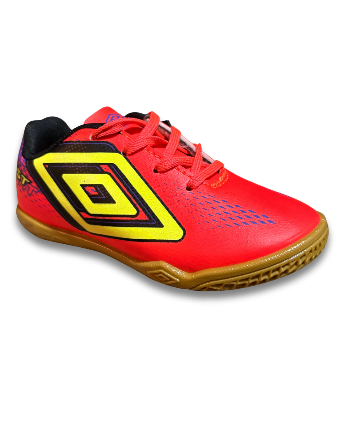 tênis umbro futebol de salão, solado de borracha com 360 zone para facilitar no giro do atleta, cabedal macio e forro bem espumado, amarração em cadarço.