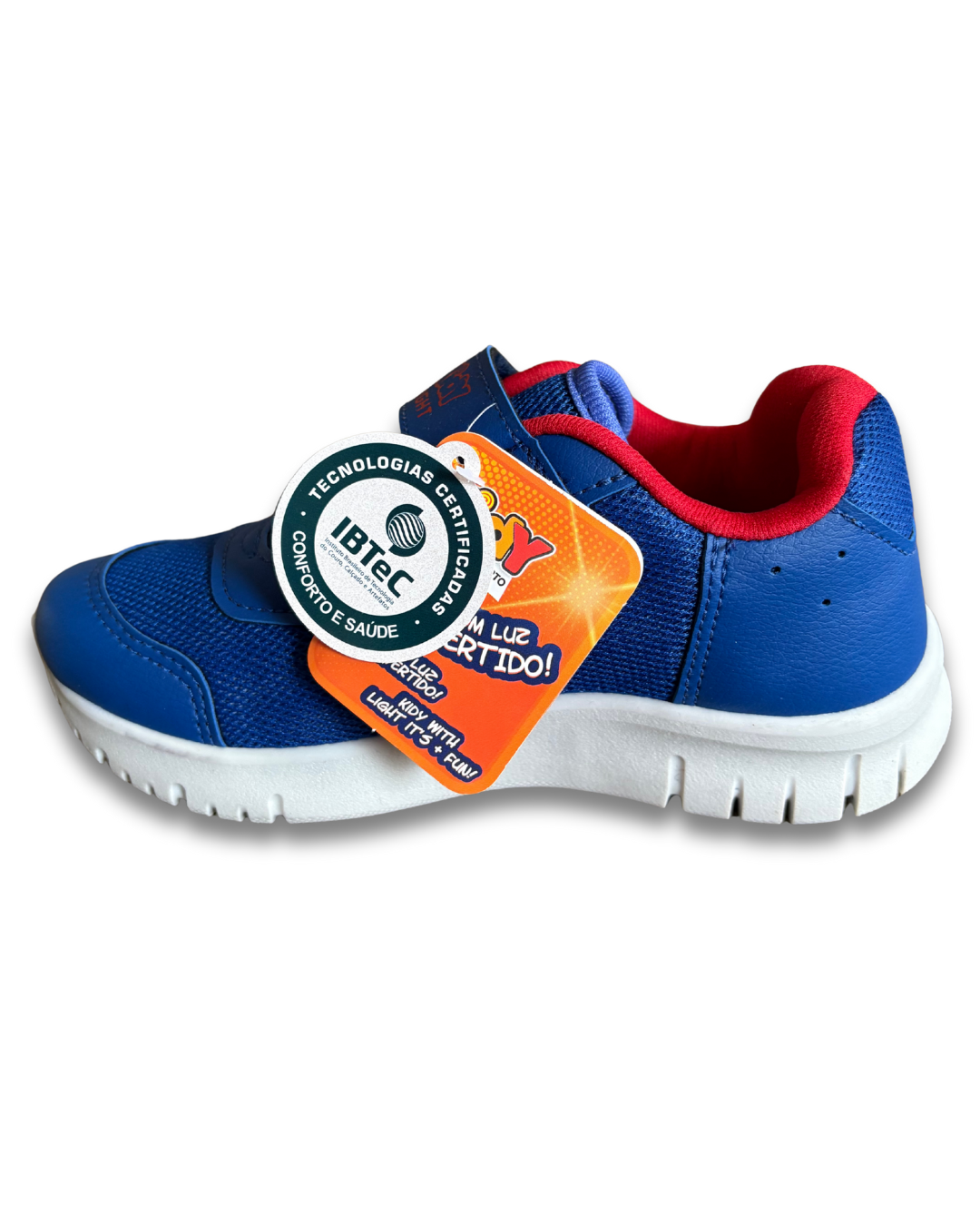 O Tênis Infantil Kidy Light Fun é diversão e segurança em cada passo. Com homem aranha lateral que brilha ao pisar, cabedal em napa ou tecido têxtil flexível, formato anatômico e fechamento em calce fácil com velcro, promove autonomia e conforto para os pezinhos em crescimento. Sua palmilha em EVA (anatômica ou Softness Foam) oferece amortecimento e maciez. O solado de borracha TR antiderrapante garante aderência, enquanto as luzes LED integradas criam um efeito encantador a cada movimento. Ideal para uso escolar e recreativo, une estilo, bem-estar e diversão ao caminhar.