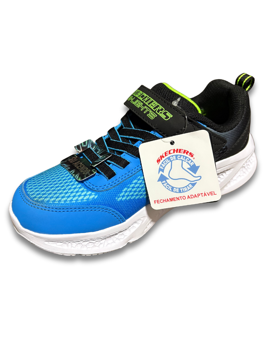 O Tênis Infantil Skechers Meteor-Lights Krendo une conforto, praticidade e diversão. Com luzes LED que acendem a cada passo, ele deixa qualquer brincadeira mais divertida. O cabedal em mesh respirável e sintético garante leveza e frescor. O ajuste fácil combina elásticos nos cadarços com tira em velcro. A palmilha acolchoada e o solado em borracha flexível prometem conforto e tração nas corridas do dia a dia.