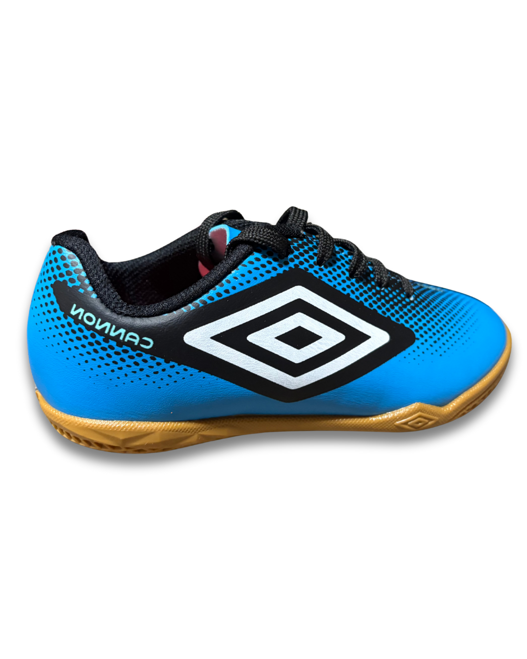 A Chuteira Futsal Umbro Cannon Jr segue o mesmo design autêntico e ousado do modelo adulto, produzida em material de fácil limpeza e manutenção. O modelo exibe artes gráficas personalizadas em cores vibrantes que adicionam o melhor do estilo Umbro aos seus treinos e partidas. Seu cabedal é construído em material sintético laminado com aplicação de grafismo reticulado e forro em tecido de poliéster. Possui Diamante Umbro na lateral estilizado com a assinatura do modelo, atacador convencional e palmilha interna em EVA forrado. O solado de futsal é construído em blenda de TPU e PVC.