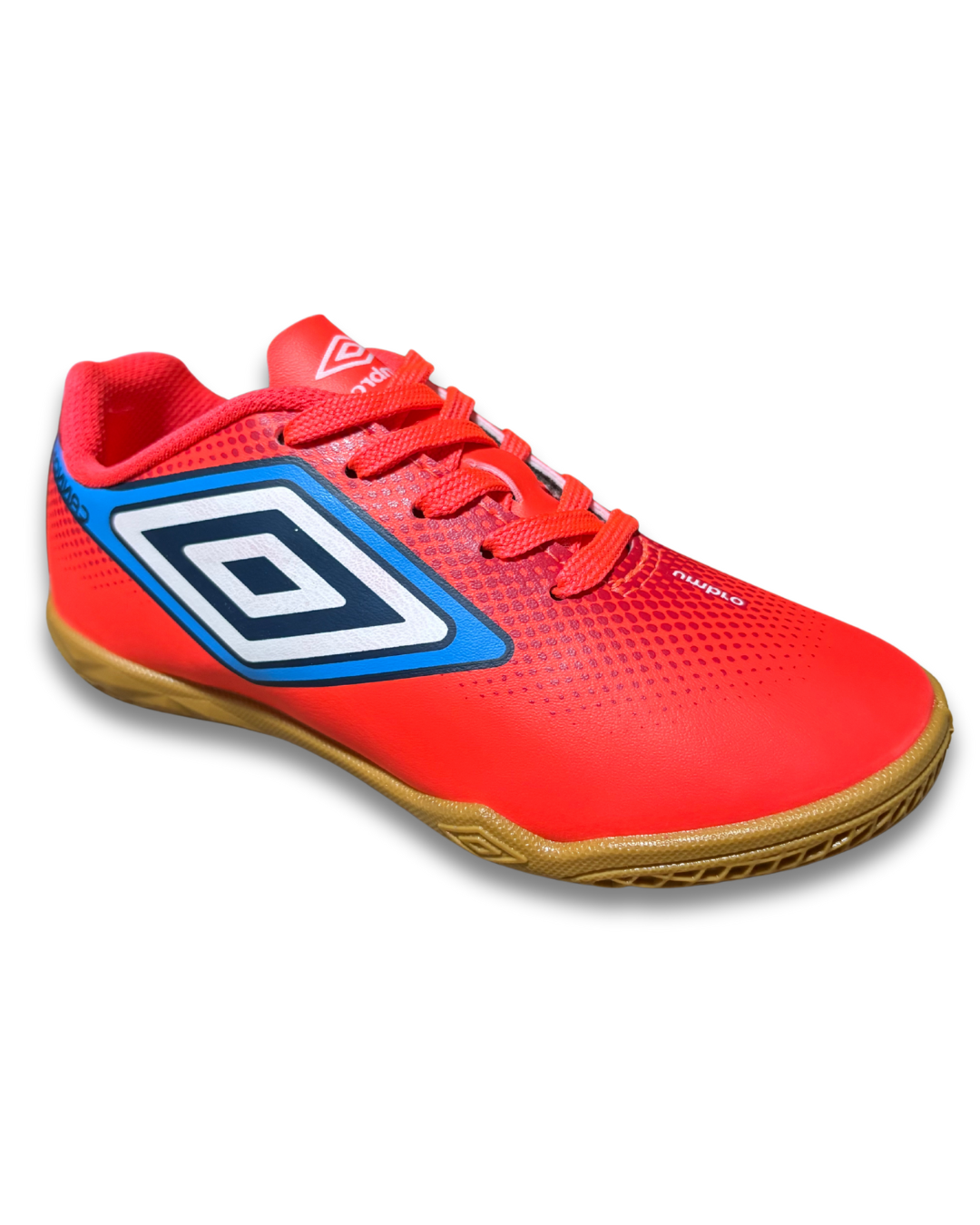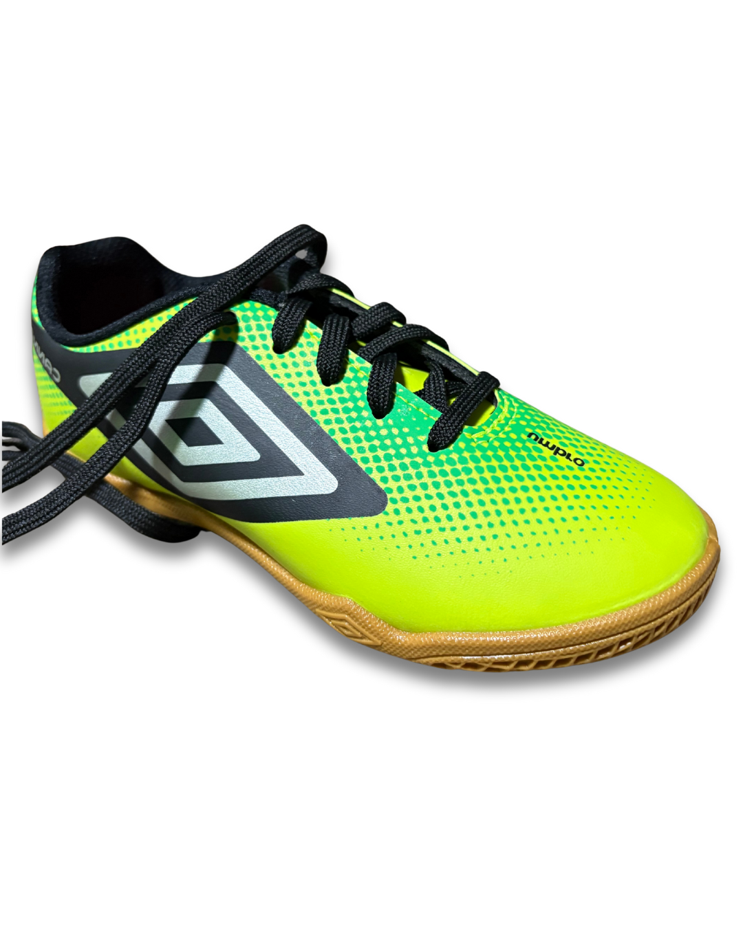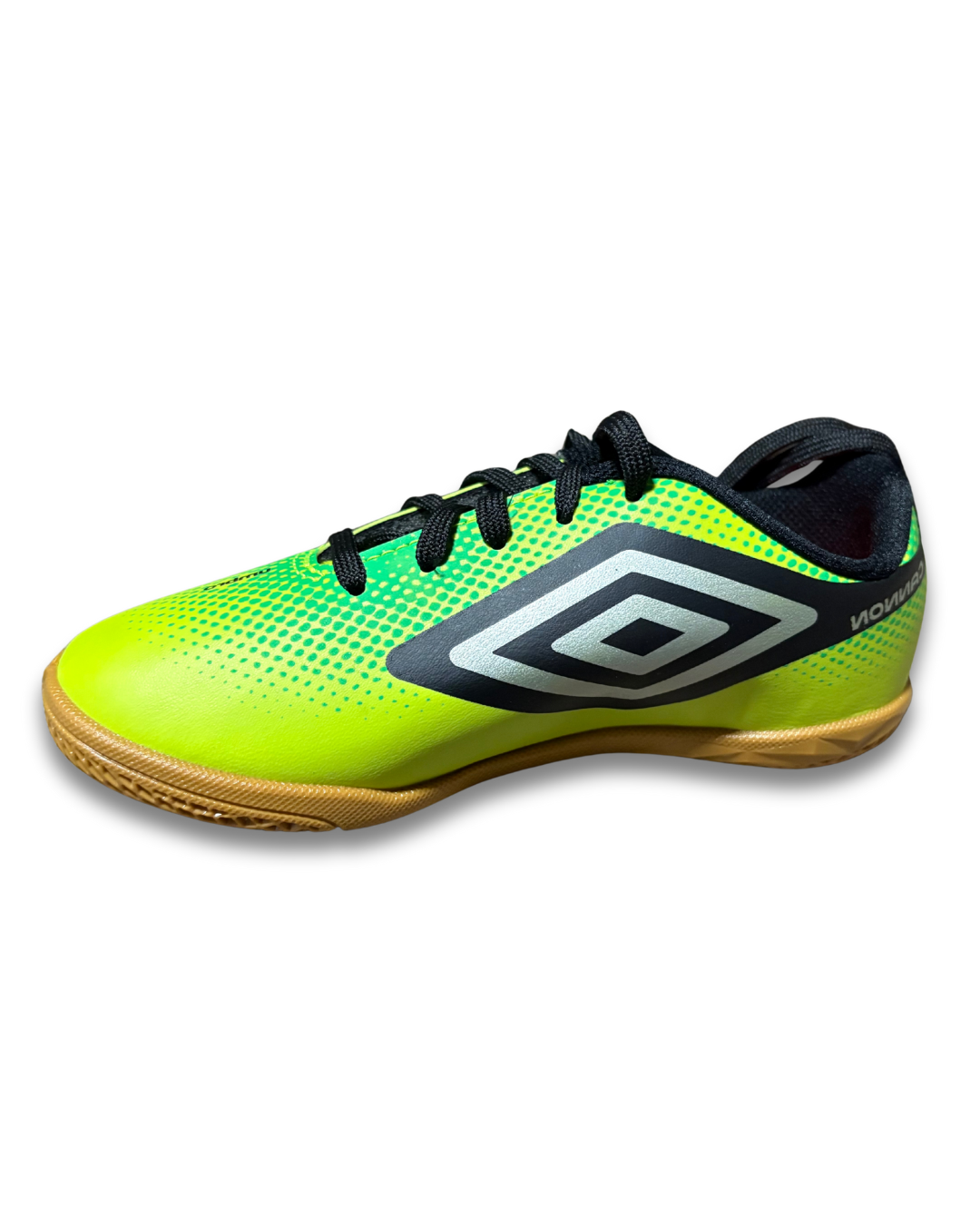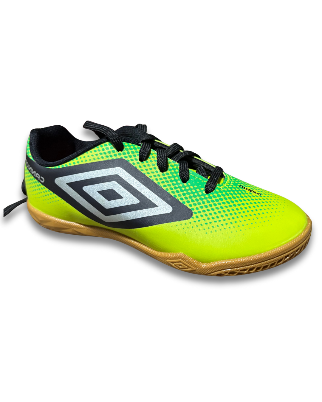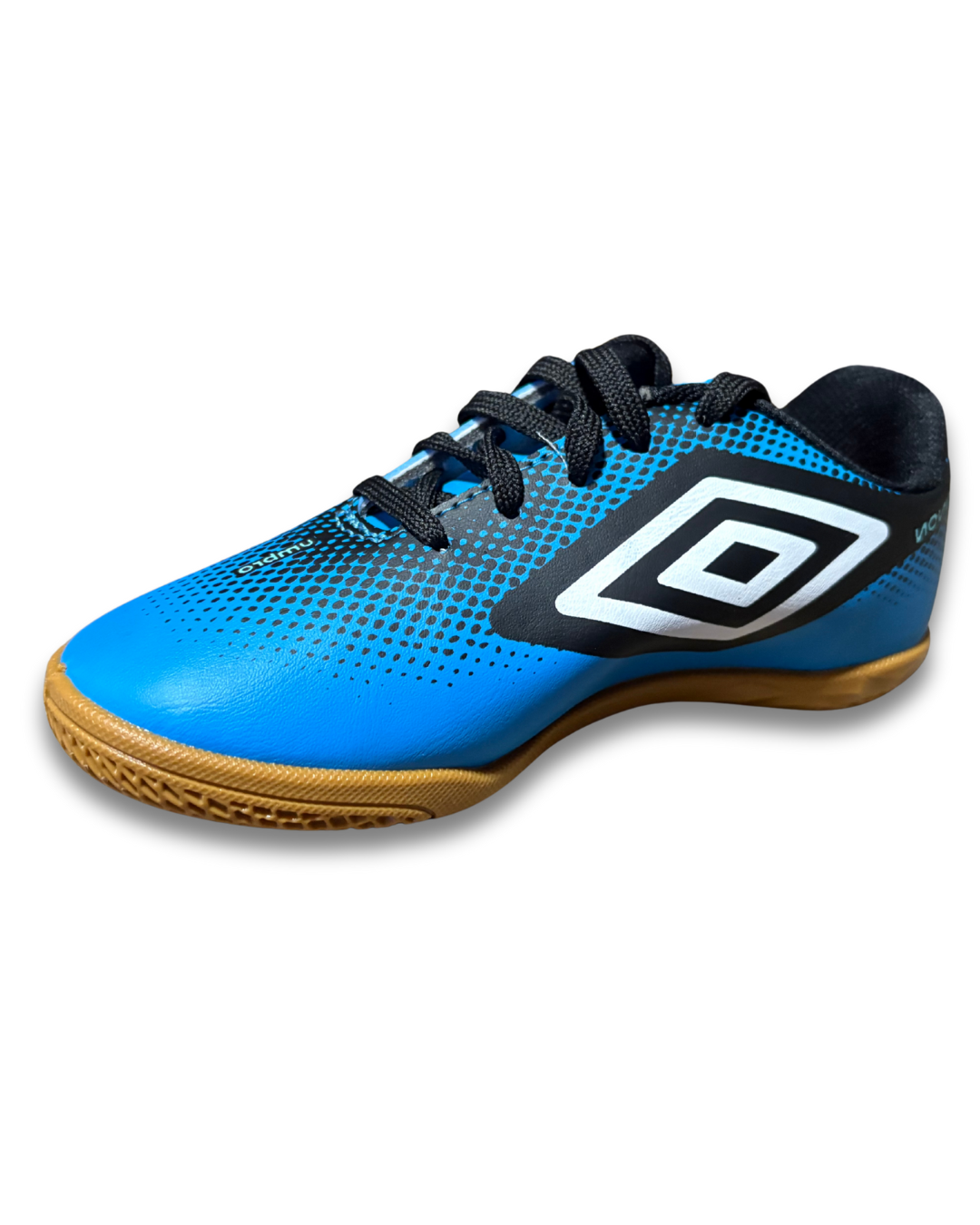 tênis umbro futebol de salão, solado de borracha com 360 zone para facilitar no giro do atleta, cabedal macio e forro bem espumado, amarração em cadarço.
