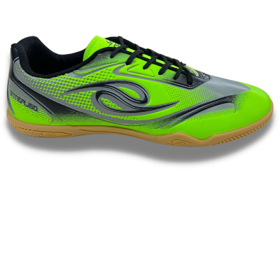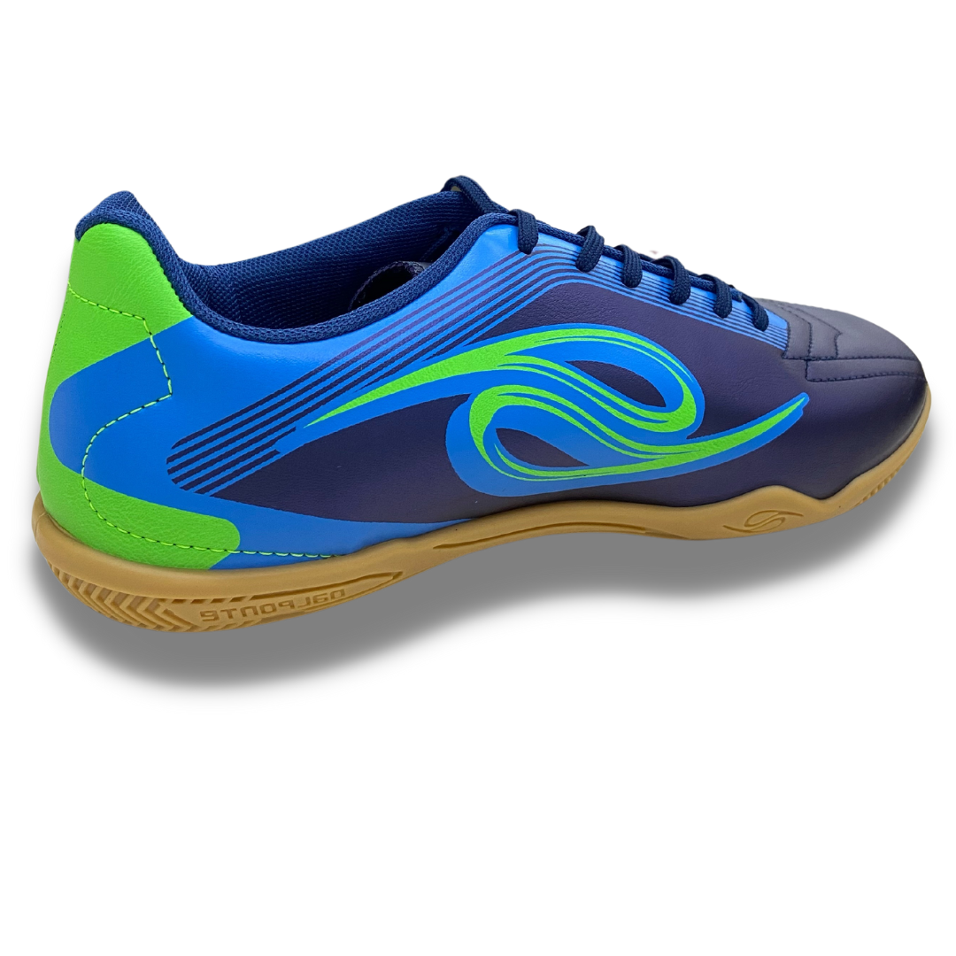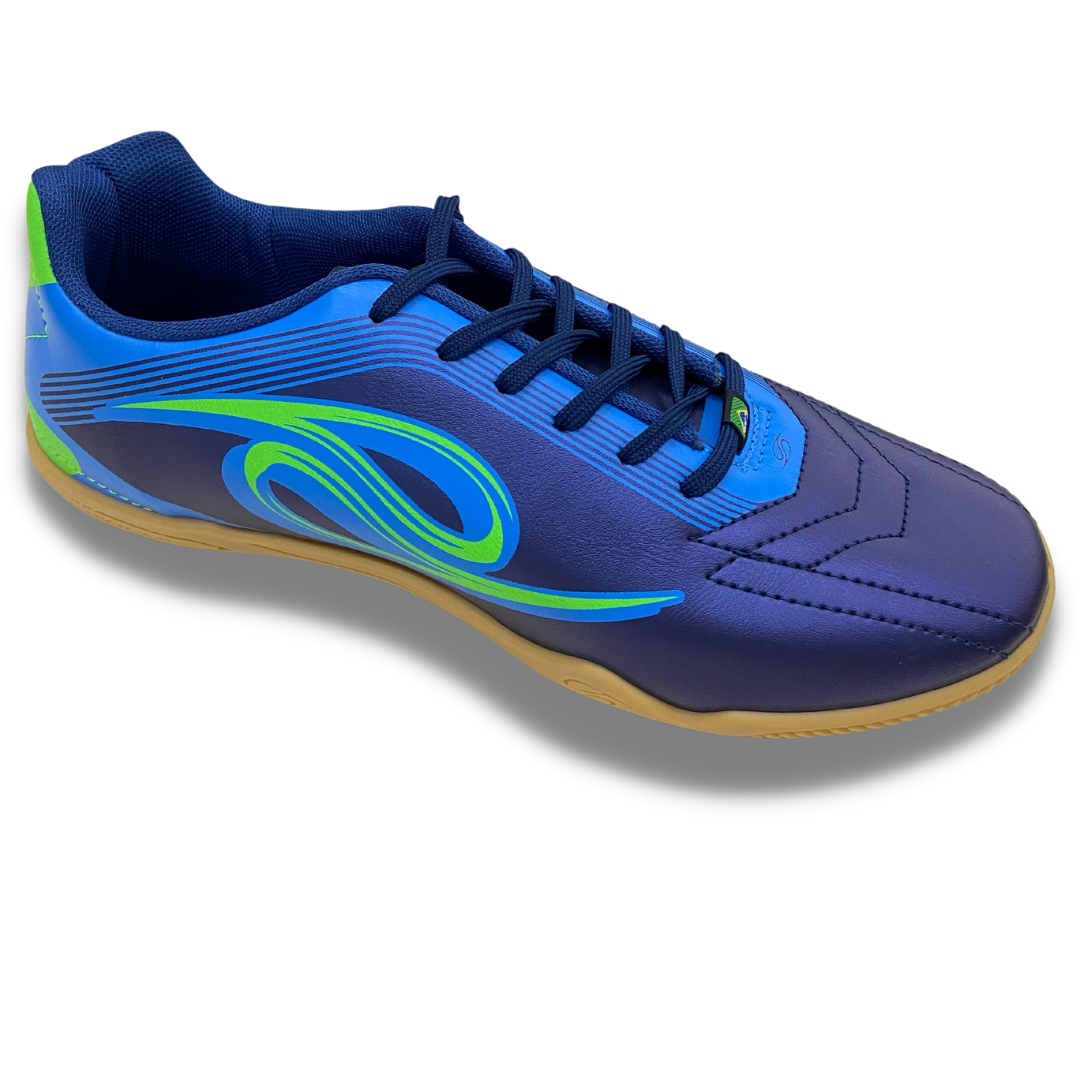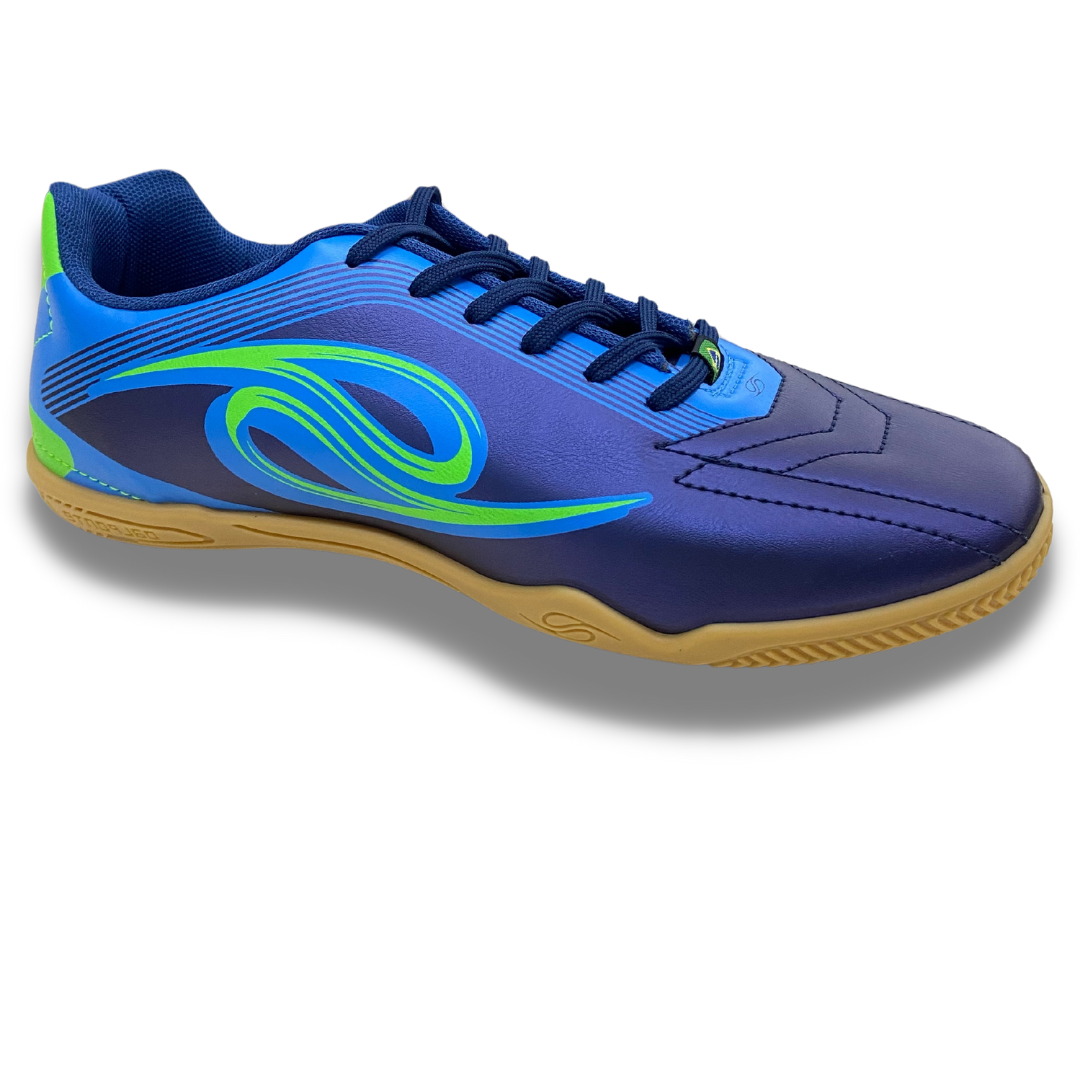 ideal para jovens atletas que buscam desempenho e conforto nas partidas indoor. O cabedal em material sintético laminado oferece resistência e toque de bola preciso. O forro em poliéster garante um ajuste confortável e respirabilidade. A palmilha em EVA + poliéster proporciona amortecimento eficiente. Já o solado misto (60 % EVA + 40 % borracha) combina leveza e aderência, sendo apropriado para quadras de futsal. O modelo oferece tração confiável e estabilidade nas movimentações rápidas. Usos ideais: treinos, jogos e prática de futsal indoor.