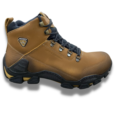 As botas dessa linha são estilo Trekking e foram desenvolvidas especialmente para usar em terrenos irregulares, é perfeito para todo tipo de aventura. Elas são fabricadas em couro, matéria prima de alta qualidade, resistência e durabilidade. O forro em tecido espumado garante o conforto e a absorção de suor, características necessárias para manter o pé seco e arejado. Já a palmilha é feita em material macio e se adapta aos contornos dos pés. O solado é antiderrapante e de alta flexibilidade, oferecendo a segurança e a versatilidade ideal ao calçado do dia a dia, e possui a Tecnologia AMORTECH de amortecimento por bolha de ar, material que garante ainda menos impactos na pisada.