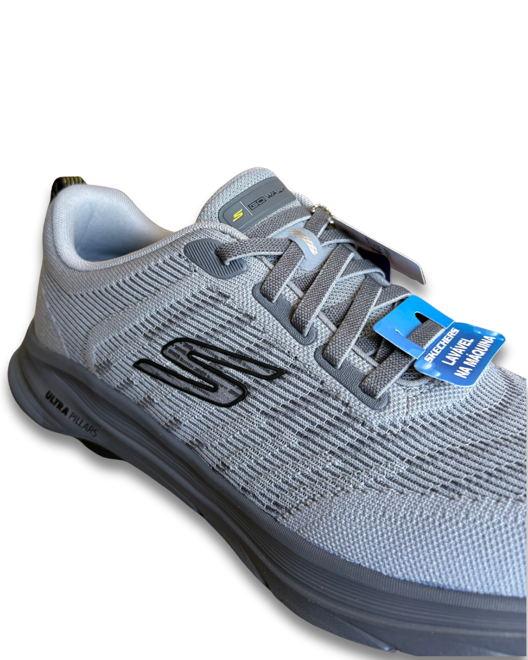 O Skechers GO WALK 8 é um tênis pensado para o caminhar diário com máximo conforto. Apresenta cabedal em malha respirável (knit) com elásticos fixos para excelente ajuste. A palmilha usa a tecnologia Air-Cooled Goga Mat®, que proporciona amortecimento de alto retorno e ventilação. A entressola é em ULTRA GO® Foam com Ultra Pillars® de alta resposta, oferecendo leveza e flexibilidade. O solado em borracha de tração dupla-densidade garante boa aderência e estabilidade. Ideal para uso casual, trabalho em pé, caminhadas ou longas jornadas com conforto garantido.